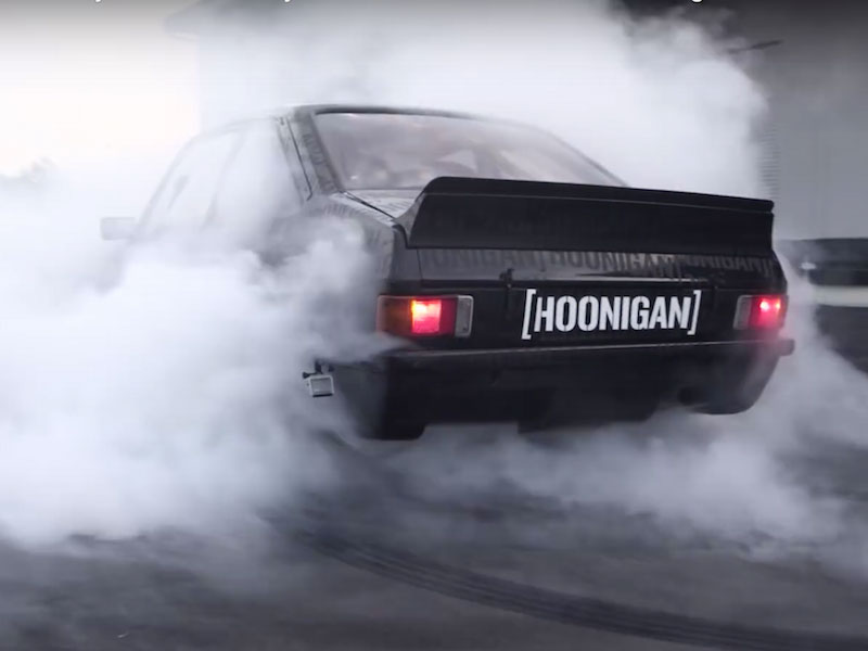 Gymkhana 8 is on its way. In the meantime, as if to prove that this Escort’s drivetrain is what he says it is, watch Block happily melting through yet another set of tires:
