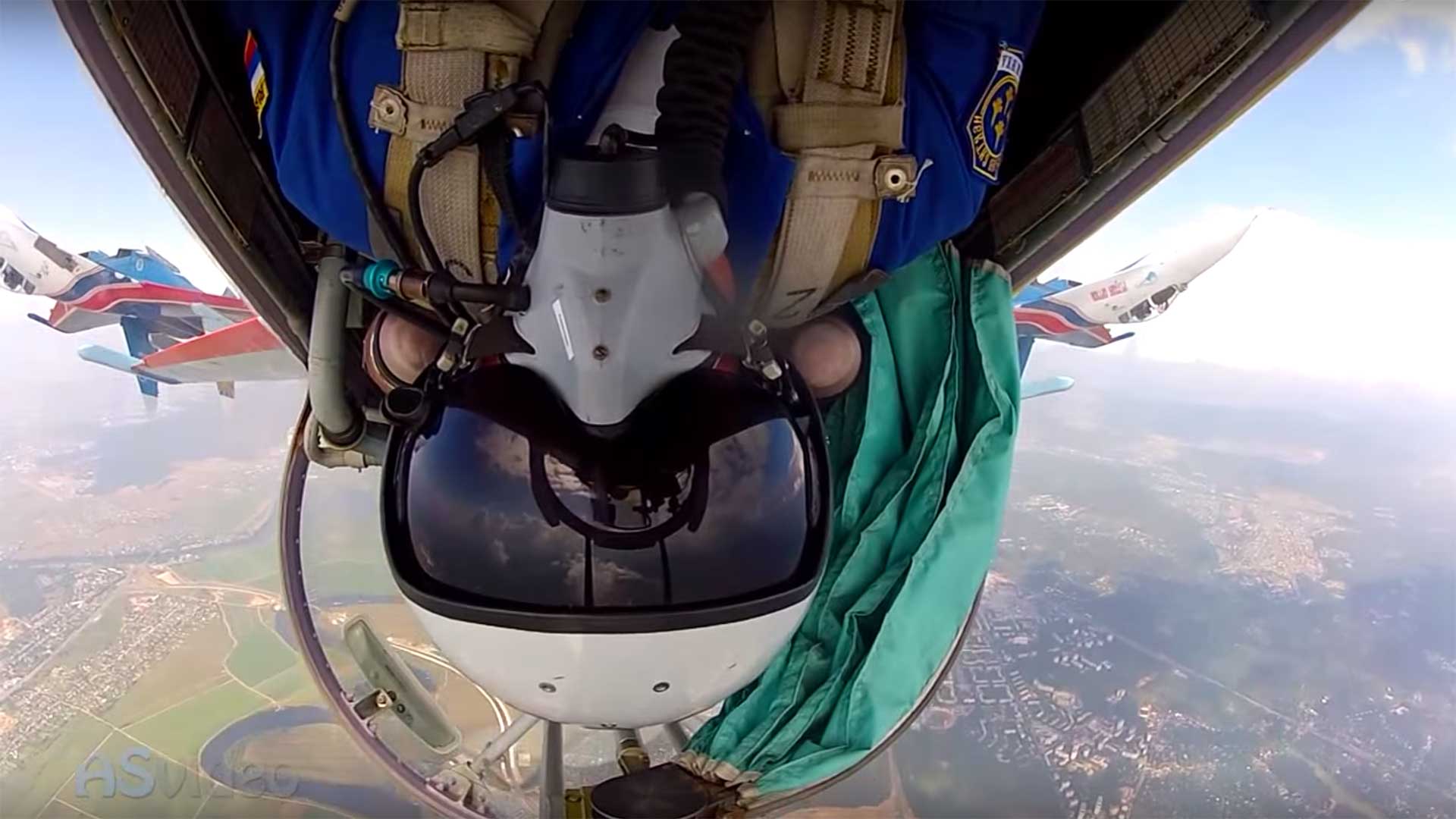 This video was filmed from the wing of a MiG-29 and the cockpit of a Su-27. The nine hotshots are part of the Russian Air Force’s Kubinka Diamond aerobatics team. Comprised of four flankers from the Russian Knights and five fulcrums from the Swifts, these airborne genies fly within a few feet of one another as they backflip, barrel roll and bank their way to glory.