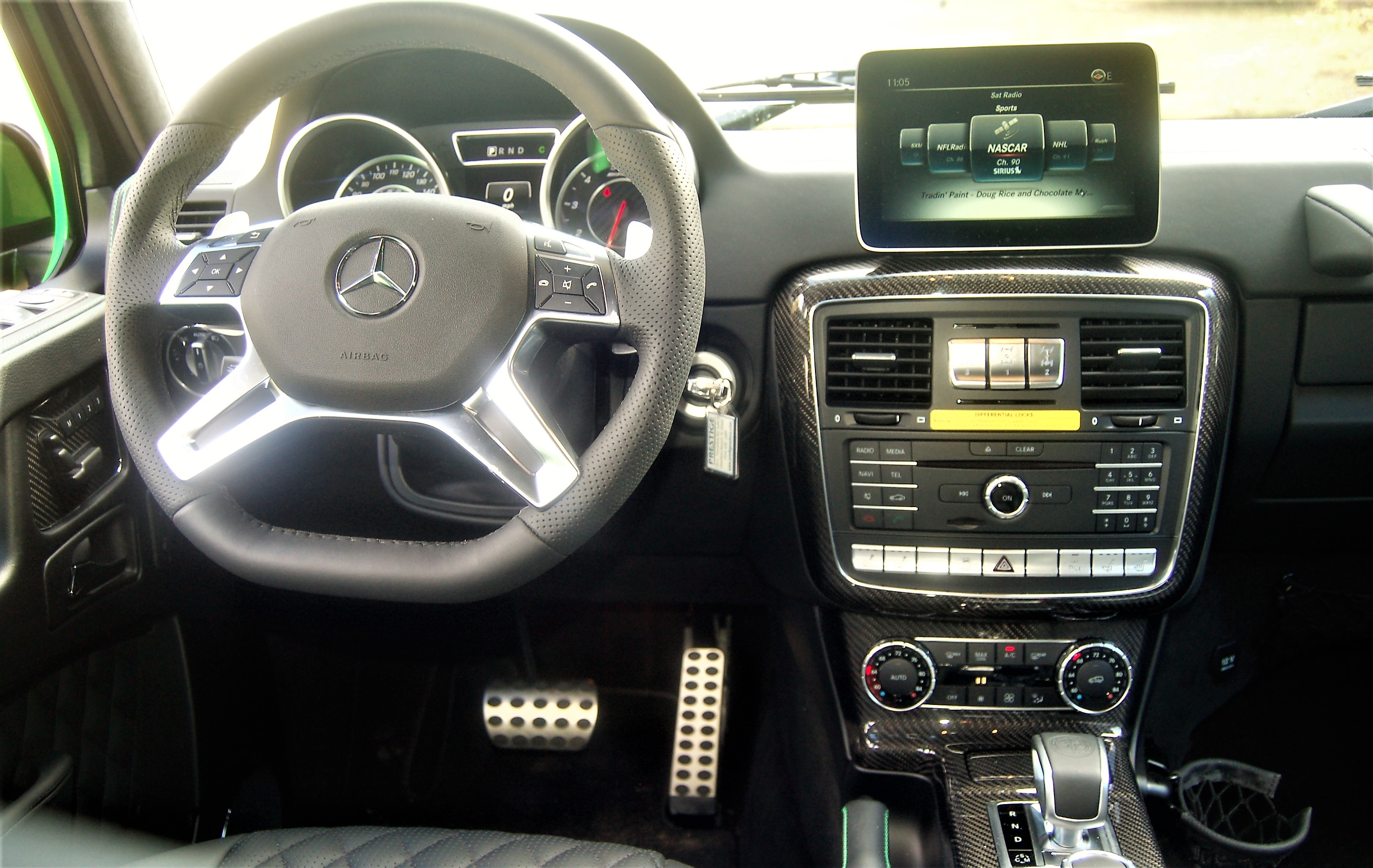 Clearly, though, I’m not the target demographic for the Soylent Green G-Wagen, because I’m not an NBA rookie with a signing bonus. That customer will enjoy the attention, the optional ($15,000) Performance Studio Package, which included stuff like carbon fiber trim, painted brake calipers and “obsidian black” exterior highlights. (Note that the added-on cup holder is just a little hoop, with a mini-basketball-style net hanging from it.)