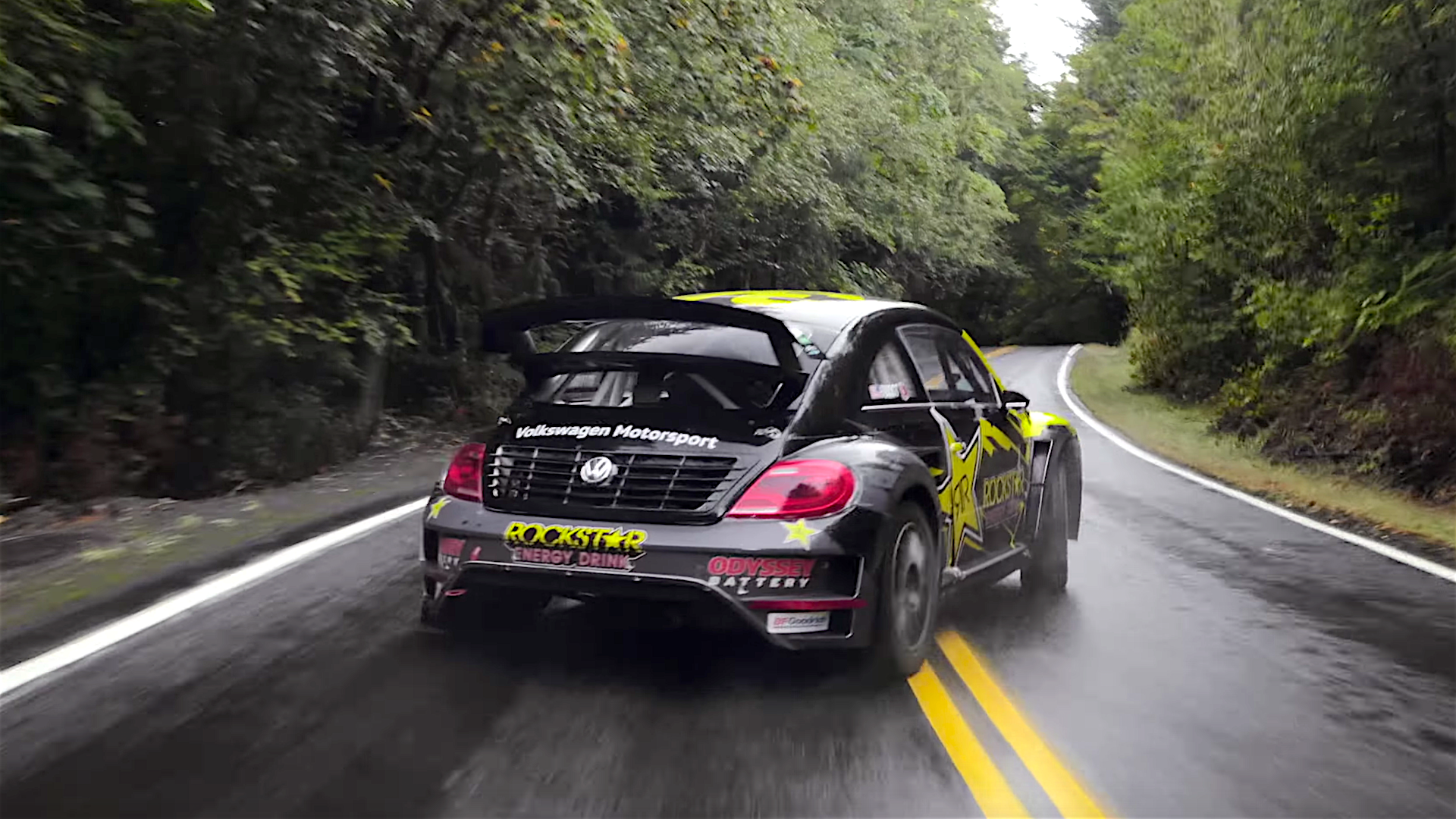 The guys at Donut Media sure know how to make slidey cars look damn good on video. This time, they have drift icon and RedBull Global RallyCross driver Tanner Foust in his souped-up VW Beetle rallycross car going at it up a slick, foresty mountain road.