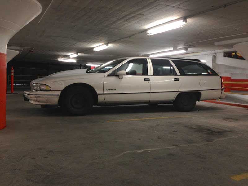 This guy, who’s hiding something nasty under that cowl hood. Maybe. See, the early Nineties Caprice wagon is many things: spacious, versatile, opaque—hell, it’s just a phone booth on steelies, really. But fast, it is not. Which means this guy’s got a big block shoehorned between the fenders. Or a supercharger. Or, he’s a sixteen-year-old who has been fitting J.C. Whitney bits to his Aunt Judith’s 195-horsepower GM wagon. Super sleeper? Dreaming? Either way, his heart’s in the right place. Hero.