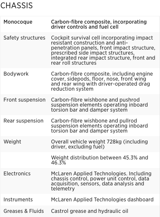 You can check out a whole bunch of information on the McLaren-Honda MCL32 here, or check out the technical specs, below.