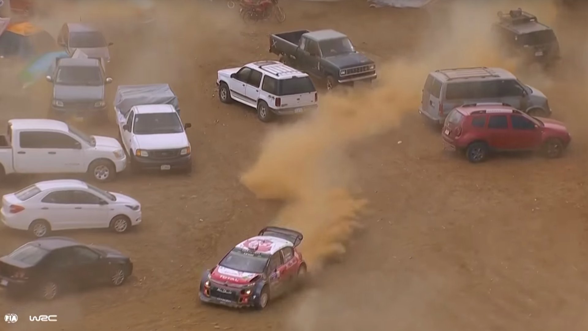 Towards the end of the race, Meeke and his Citroën C3 were sent through some shrubs and into a lot where he apparently damaged at lease one car after going off course on stage 19, the final stage of Rally Mexico. Meeke even sprayed bystanders and parked cars with massive amounts of sand in his desperate attempt to make his way back on course. But hey, he did it.