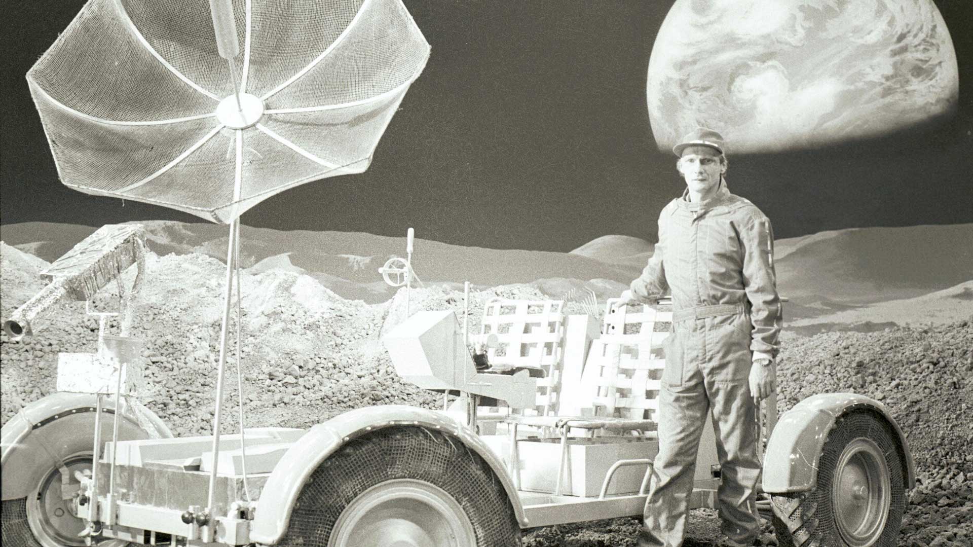 Niki Lauda, who’s posing next to “The Future Car.” This is a promotional still from 1985, for the German television special 100 Years of the Automobile. Lauda, a three-time Formula 1 champ, known for his no-bullshit approach and exceptional cojones at the wheel, a man who once had his face melted off in a single-seat inferno, has been trotted out for publicity photos. It is one of the most absorb things I’ve ever seen. Seriously, is that a tin foil laser gun? Why are the wheels wrapped with kitchen drain strainer? In “The Future,” have we regressed to using cross-hatched plastic lawn chairs as bucket seats? And yet, there’s Lauda, suffering the idiocy with grace. For that, and his courage in an F1 cockpit, we salute him. Hero.