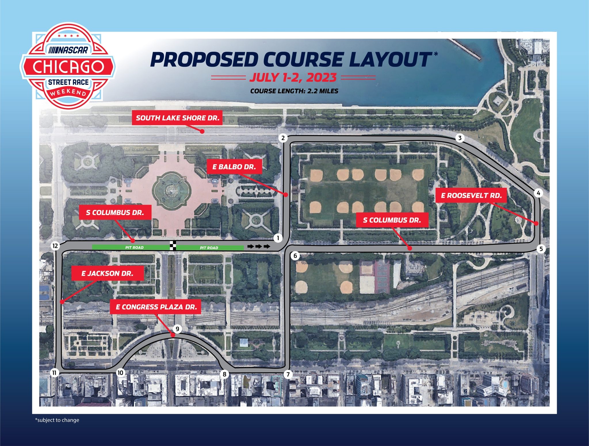 NASCAR has a history of racing near Chicago, but never in the heart of its downtown. Stock cars roared around Chicagoland until 2019 when the Cup Series last visited there, though that oval is actually in Joliet, Illinois, more than an hour away. Next year’s race will take place on a temporary 12-turn course that measures 2.2 miles.
