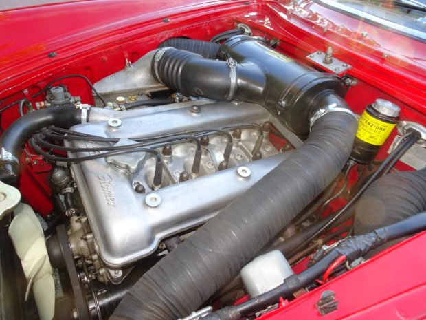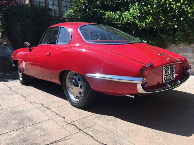 Lying under the bonnet is a 1,290 cc twin-cam four cylinder that is signature Alfa Romeo. Dual side-draft carburetors keep it supplied with fuel and help it to produce 100 horsepower in this application, upping its performance from lesser Giulietta models. Mileage reads 10,500 kilometers, though the seller claims that figure is inaccurate as he has placed an additional 7,500 kilometers on the car on top of the indicated amount.