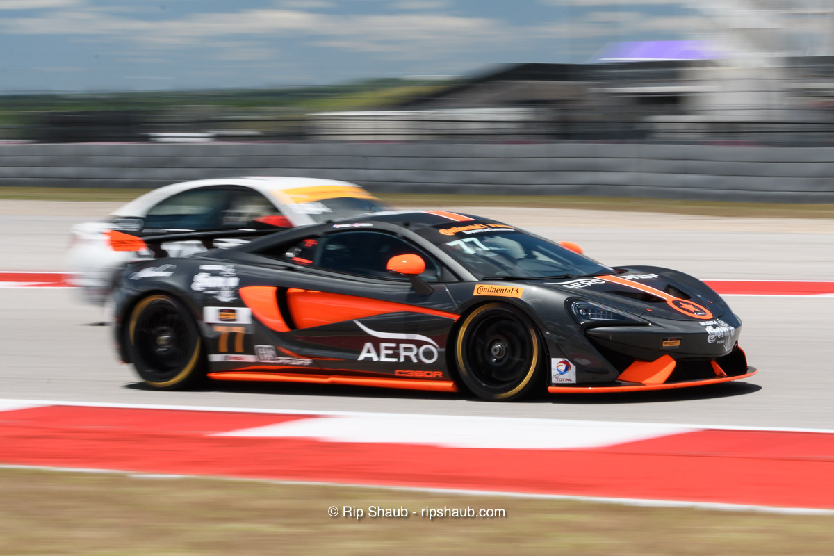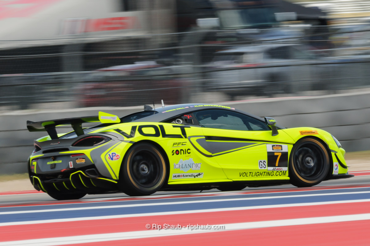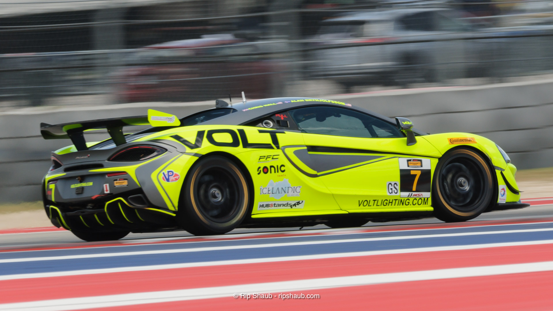 Volt Racing’s McLaren times its entry into Turn 3 at COTA on Friday., © Rip Shaub – All Rights Reserved