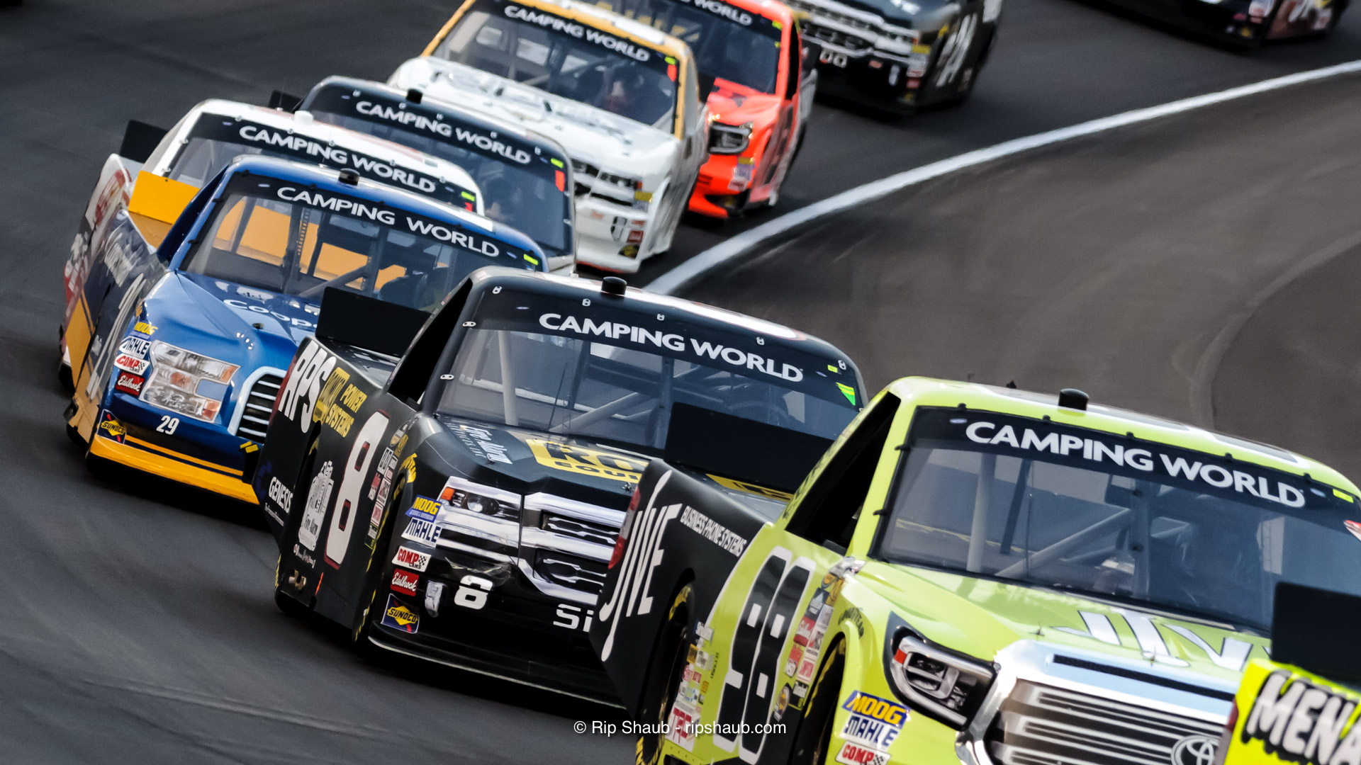 Enfinger, John Nemechek and second place finisher Chase Briscoe work the draft with the rest of the field under the green flag. , © Rip Shaub – All Rights Reserved