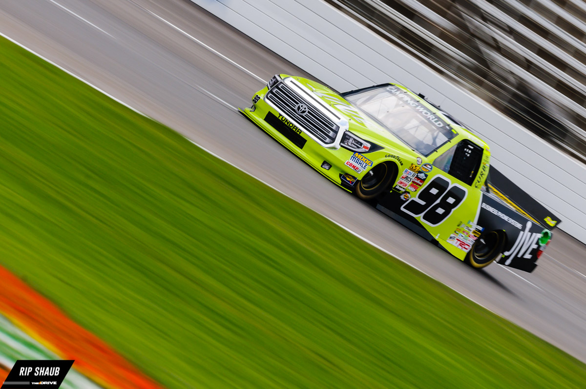 Noah Gragson was the big story in qualifying. The 18 year old took the pole, and then hours later, donned a cap and gown for a track-side pre-race high school graduation ceremony. He’d ultimately finish in seventh., © Rip Shaub – All Rights Reserved