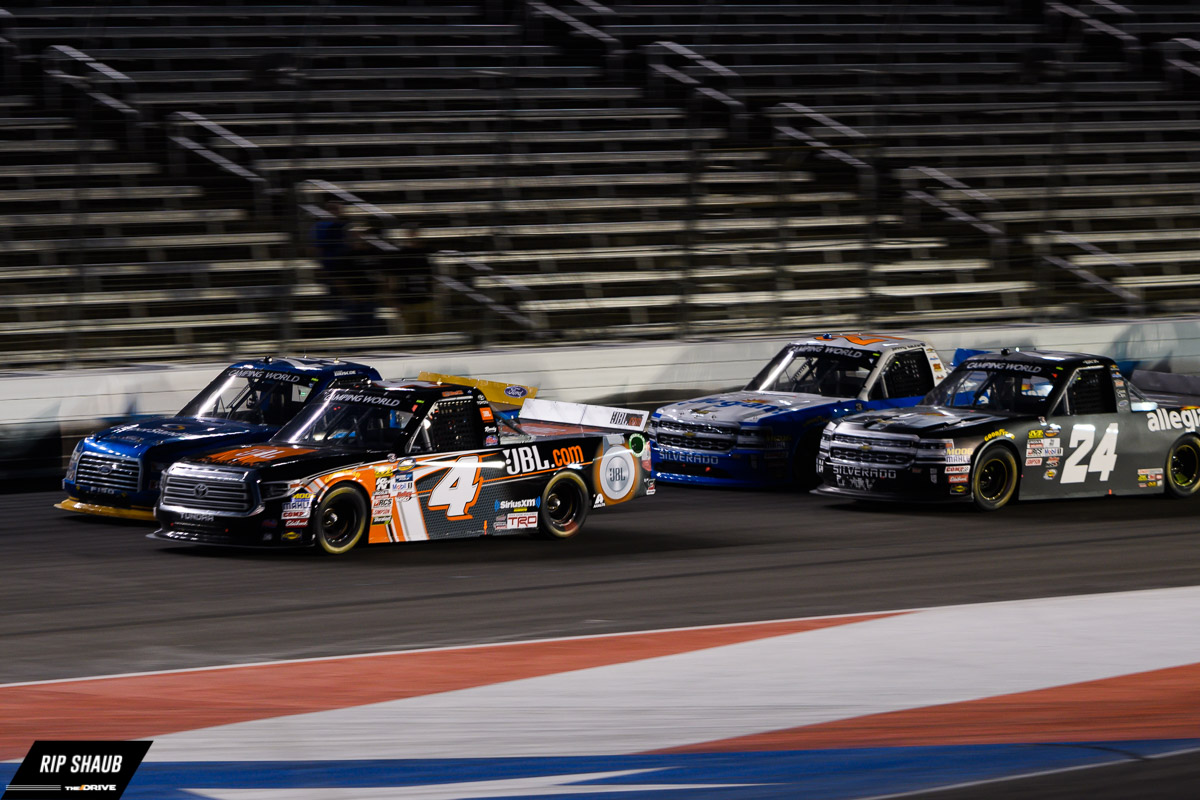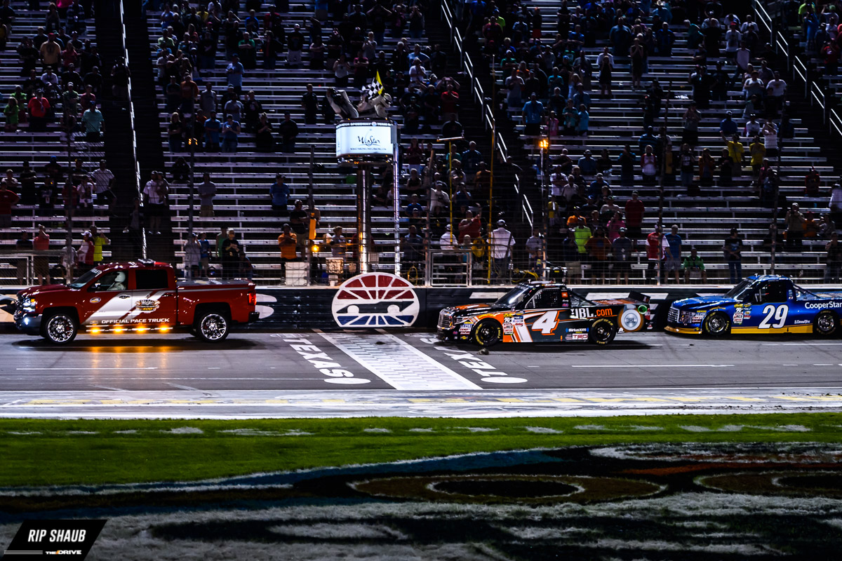 Friday night featured the NASCAR Camping World Truck Series running the winstaronlinegaming.com 400 in Forth Worth, Texas. Christopher Bell took the victory under caution in a race that was punctuated by a brutal crash . Timothy Peters went end over end on the second to the last lap, forcing the winner to take the checkered flag while driving past Peters’ car, still upside down on the track.