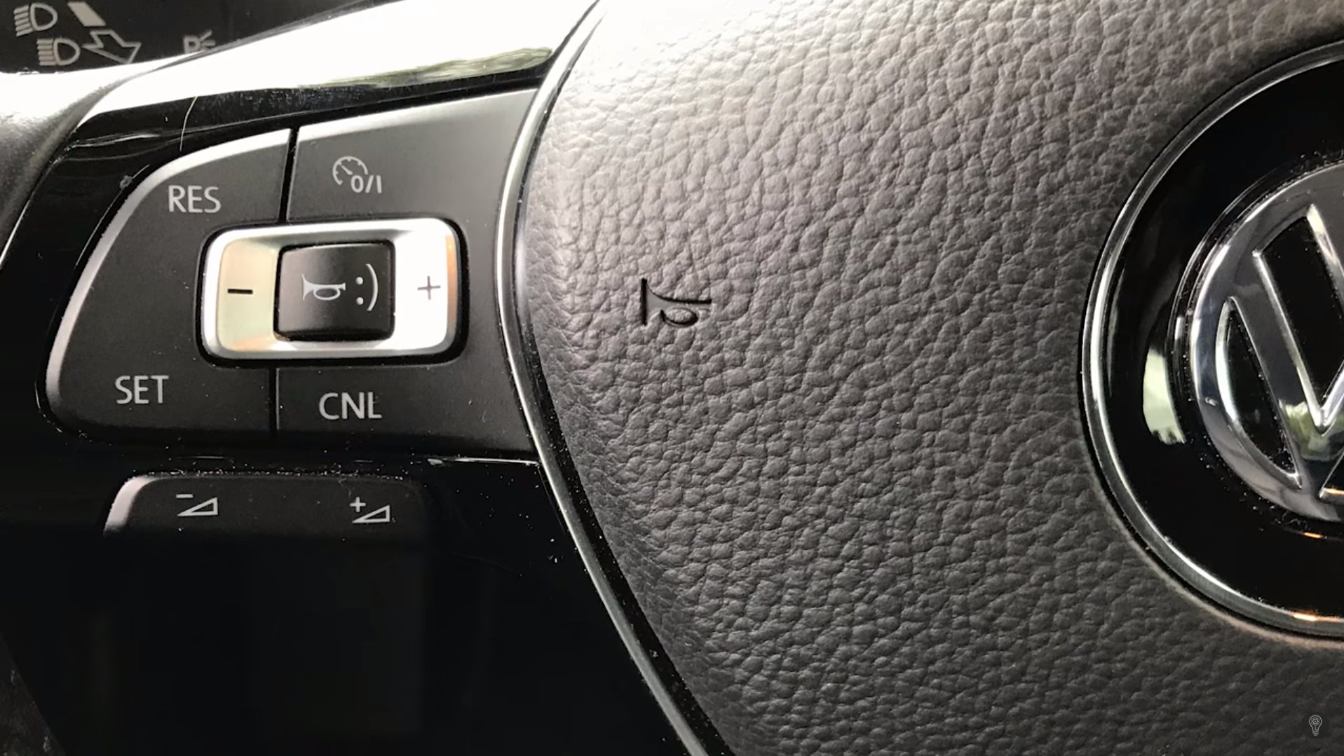 The setup in his Volkswagen Jetta has three illuminated buttons that are beautifully installed to look like they came from the factory. One button honks the courtesy horn, another button blows an air horn that sounds like a train for “extreme situations,” and the third button makes R2D2 sounds, possibly the most pleasant of all digital sounds.