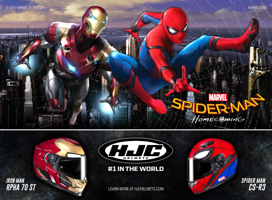 As a promotion for the upcoming Spider-Man: Homecoming movie, Marvel has teamed up with HJC to create some super new helmet graphics. This isn’t the first time we’ve seen graphics of these two iconic heroes on HJC helmets, but now there’s more variety in price and style to suit the tastes of more riders.