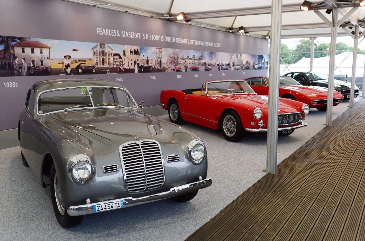 - 3500 GT: the first “mass-produced” Maserati made its debut in 1957, the year Fangio took the F1 title in his 250F. Its aluminium body was designed by Touring around a 3.5-litre six-cylinder engine with 230hp.
