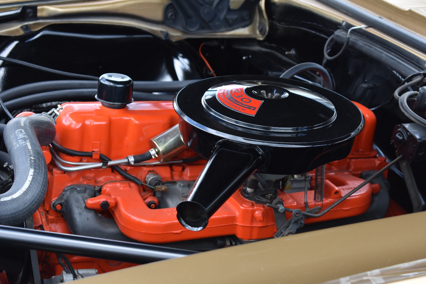 Under the hood is an original 230 ci inline-six engine with a three-speed manual transmission with a column shifter. Other than a seat cover and a carpet set, every single piece of this Camaro is an original GM part.