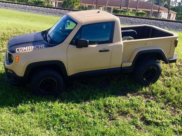 Many Jeep enthusiasts with fond memories of the automaker’s previous truck offerings were thrilled when a Wrangler-based pickup truck was announced. But for those who don’t want to wait until 2019 for your Wrangler pickup, you can buy this one-off Jeep Renegade that has been converted into a small truck on eBay right now.