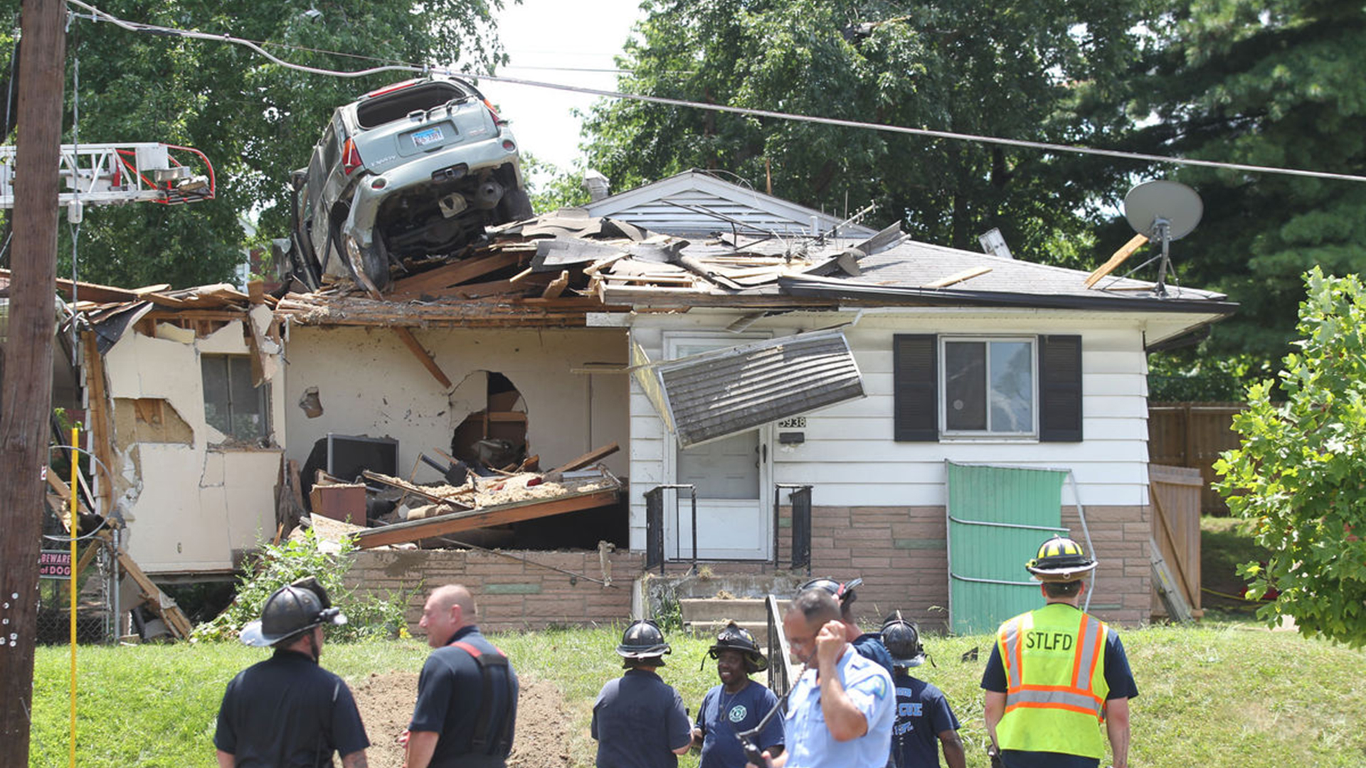 A handful of people had a real bad day in St. Louis, MO on Sunday. In the Walnut Park West neighborhood, an SUV sped down a street, ran a stop sign, hopped a curb, and ended up on the roof of a house. The driver of the SUV was eventually taken to the hospital in critical condition. No one was in the home at the time of the accident, but the owner was less than thrilled to find an SUV sticking out of the roof when he returned.