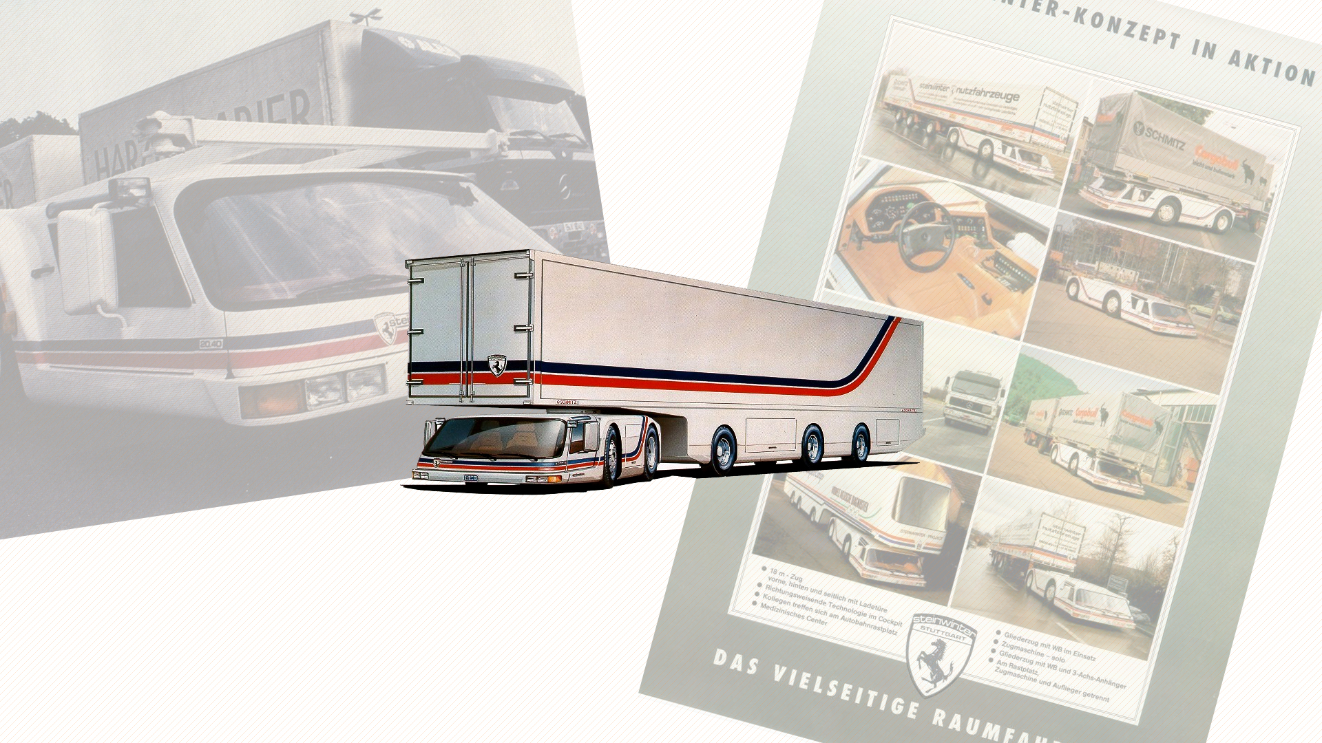 Meet the Steinwinter Supercargo. From depths of retro-future hell, this cargo carrier was the brainchild of Manfred Steinwinter, an auto engineer from Stuttgart, Germany. It made its first debut at the Frankfurt Motor Show in 1983. This “nutzfahrzeuge,” or “commercial vehicle” was the engineer’s idea of efficiency—likely much different than what manufacturers have started doing today. Its low profile was believed to save on fuel costs by reducing the drag created by the gap from truck to trailer, and its overall length is cut down, enabling more freight to be loaded without disrupting legal requirements of vehicle size.