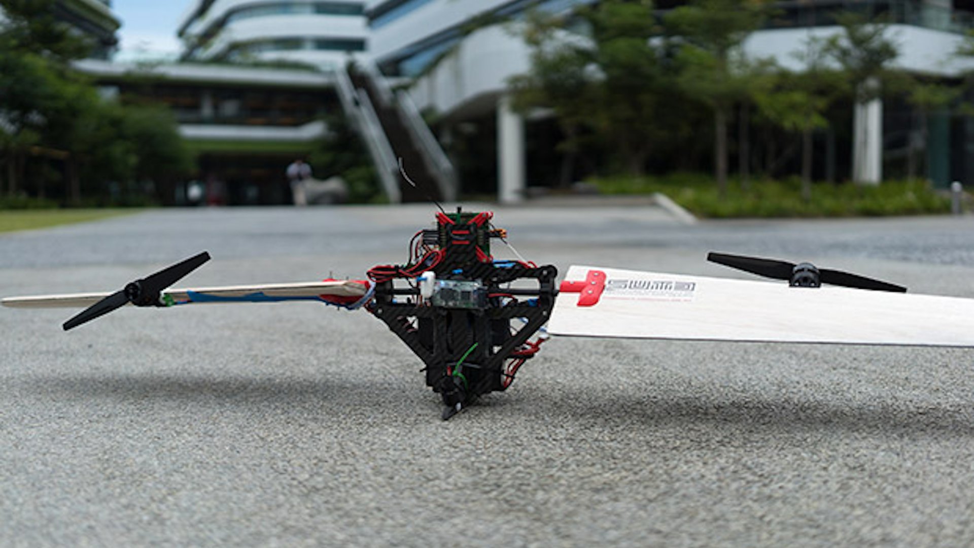 , THOR in “Hover Mode” configuration., SUTDThe most important part of THOR’s operations is clearly the transition of the wings and their degrees to the ground. In order to switch from Cruise to Hover, each blade must rotate by 90 degrees, and this has to happen mid-flight without any obstruction to the intended flight path or any other user-experience flaw. According to IEEESpectrum, this action is done by an actuator in THOR’s midsection. Apparently, THOR has been extremely reliable in this regard. According to the SUTD team, “the motors were strong enough to almost instantaneously break the craft out of H-MOD rotation and push the craft into translational flight.”