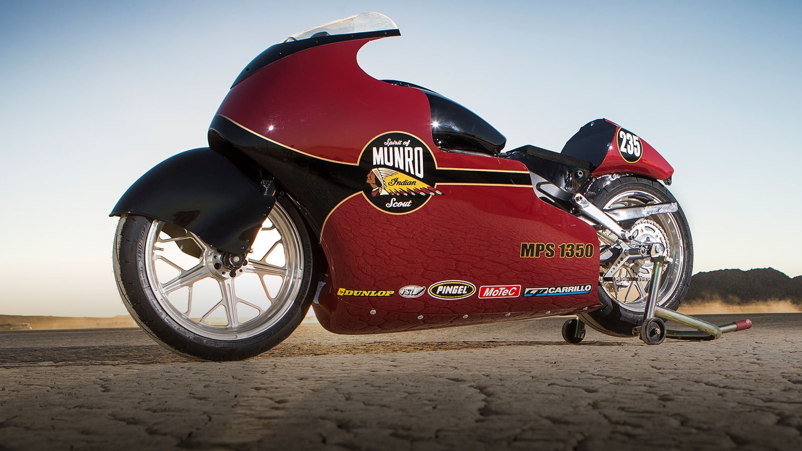 To commemorate the 50th anniversary of the historic record, Lee Munro has been saddling up on a modified Indian Scout of his own called the Spirit of Munro. In this commemoration, a new record was broken in the MPS-G (Modified Partial Streamliner—Gas) motorcycle class with a blistering speed of 186.861 mph.