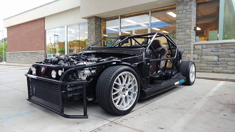 Meet Will Knytych – a technician at a Honda Dealership in Alabama. Knytych happens to own a very special car, and that’s not just because it was one of the best 5-series BMWs ever built. This particular 540i has been completely peeled of its shell and reinforced with a low-profile tubed exoskeleton. Eventually, he started to grow tired of his boosted 1997 Acura Integra, so when JD Durham of Krowrx Fabrication in Springville, Alabama offered up this e39 exocar in exchange for his car, Knytych knew that he couldn’t pass it up.