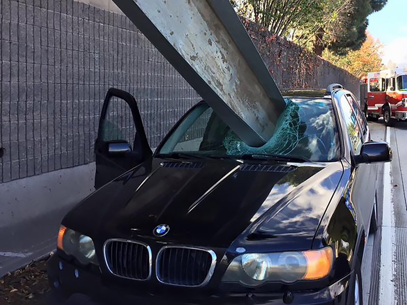 In this case, a San Jose man escaped fatal impalement when a huge steel beam came loose while traveling on the freeway. The massive piece of metal] speared right through the roof of his black BMW X5. Don Lee, 66, was lucky to walk away with merely a scratch on his right arm. Presumably, he went right out and bought a lottery ticket.