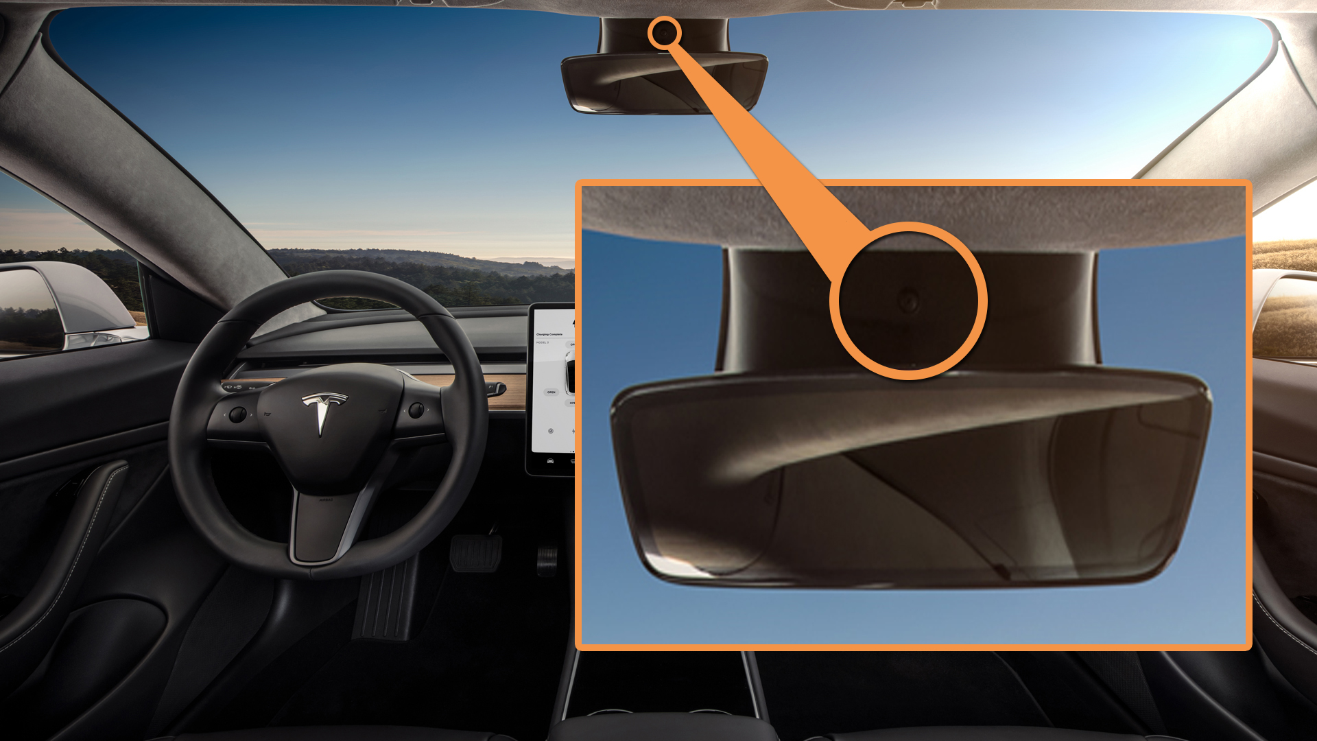 Additionally, there’s an interesting feature to point out in Tesla’s press photos—the Model 3 has what appears to be a driver-facing camera in the rear view mirror. Tesla may be using this to snap a photo of the person entering the car when ride sharing on The Tesla Network is active, or possibly as an additional tool to monitor driver awareness to prepare for the inevitable self-driving vehicle regulation requirements. Either way, the company has confirmed the existence of the add-on, though have stated it was inactive at this time, according to Electrek. The camera can be seen nested above the mirror in the below photo.