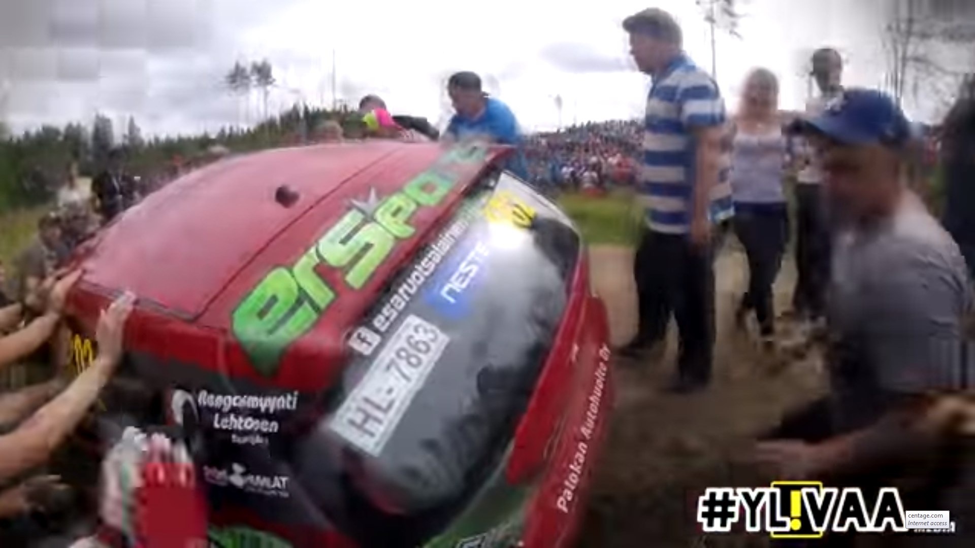 One particular corner of the Päijälä stage must have had a bad pace note, as 15 competitors went straight off the road instead of making the corner past a large group of spectators. But this group brings the phrase “audience participation” to a whole new level. Even before these cars stop moving they are swarmed by cheering spectators. After making sure the occupants are OK (spoiler: no one is hurt, despite the dramatic crashes), they quickly roll overturned cars back onto their wheels, hook up a rope, and pull the cars out of the way if they are too damaged to continue, or back on the road if they can press on regardless.