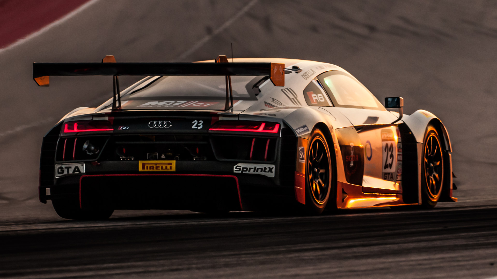 The setting sun made for a beautiful scene at the racing continued past sunset. M1GT’s Audi looked terrific in Turn 19. , © Rip Shaub – All Rights Reserved