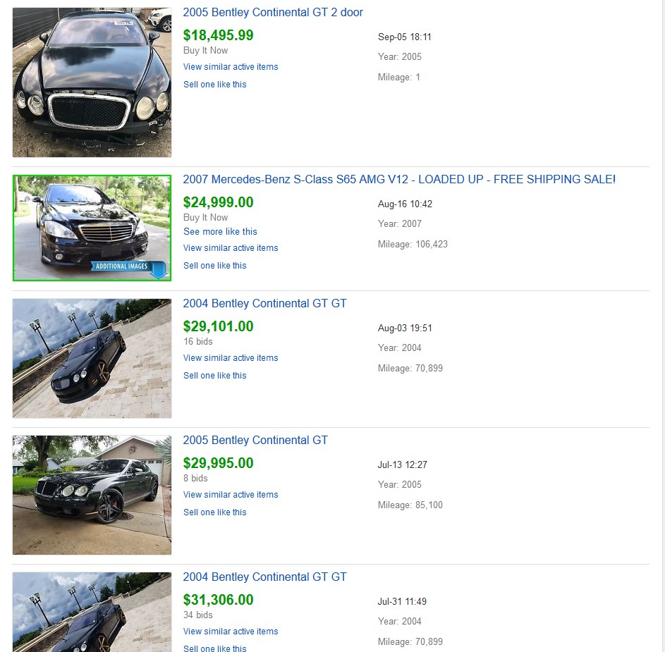 The VIN was not provided in the eBay listing so determining the year of the car was not possible, but lets take a look at some of the current eBay listings for non-Megabuild TV show Bentley Continental GT’s.