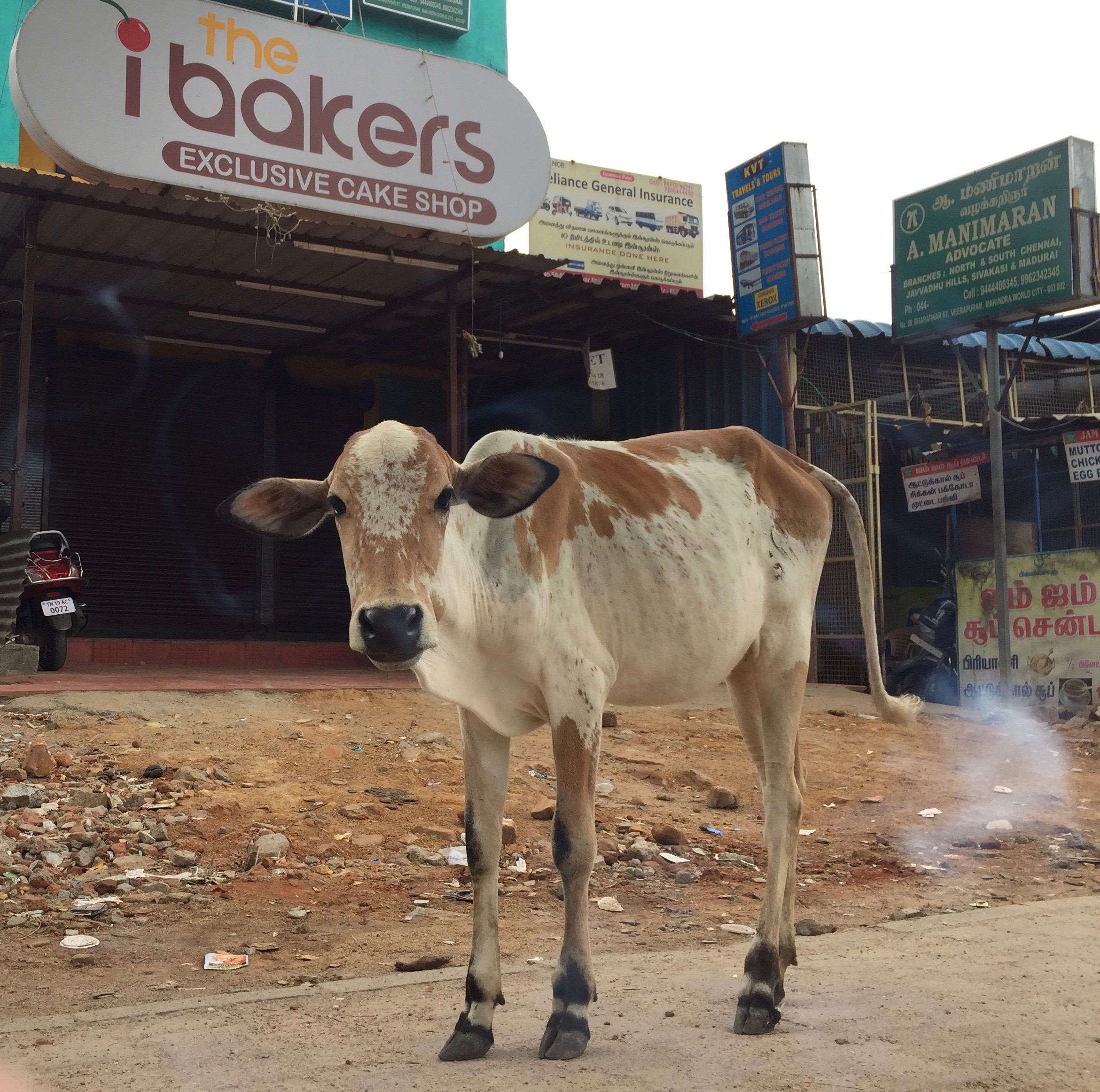The reality looks more like this: cows roaming freely in and near major cities, with traffic stopping at unexpected times to allow them to wander—or sit—unhindered.