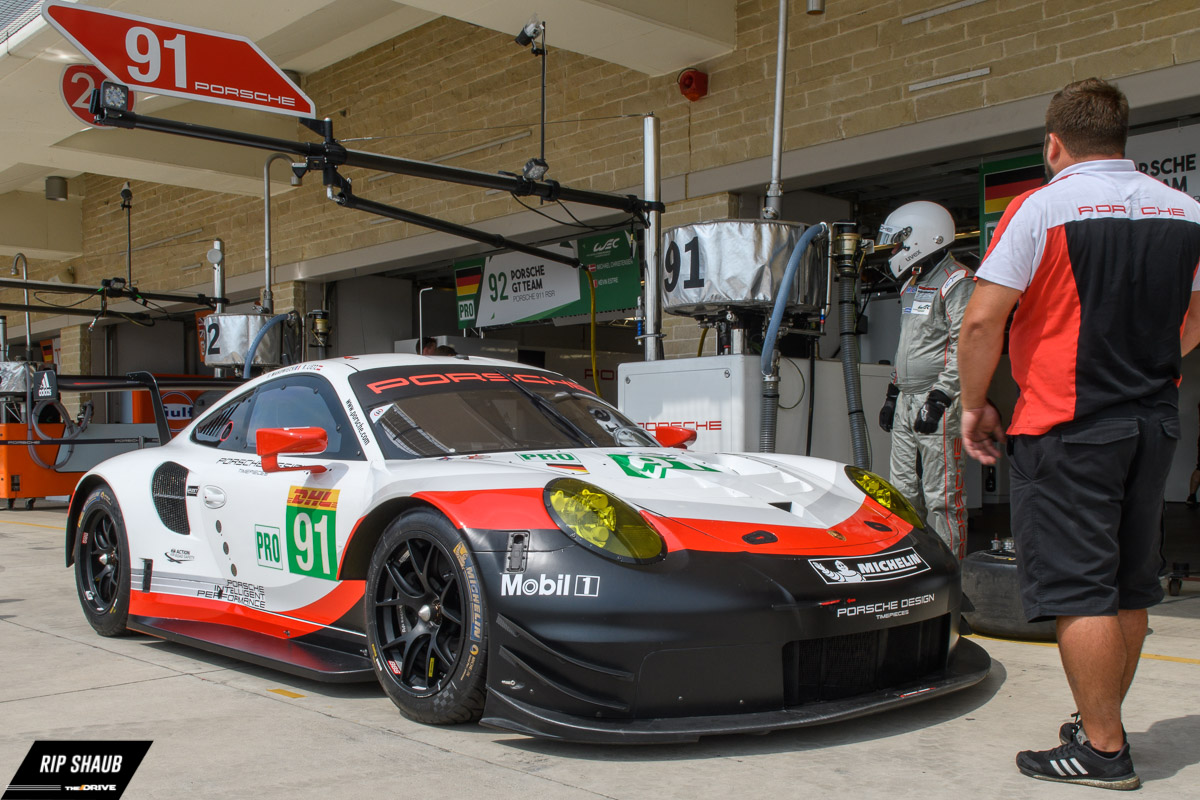 The Porsche GT3 RSR is the one that made big waves at the beginning of the season. This is the first mid-engined 911 and the change was necessary in order to fit a proper diffuser on the rear. Since the car is new in 2017, only Pros can run this version. The two at COTA this weekend belong to the Porsche factory team.