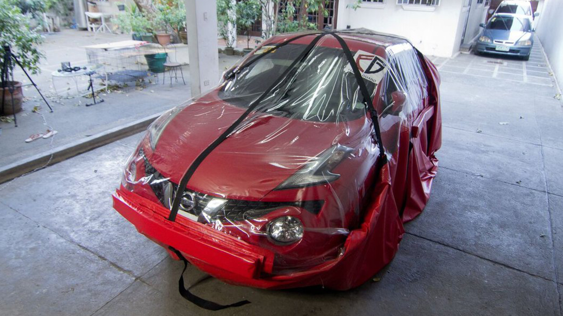 After sealing the bag and folding up the edges like a giant present, all you have to do is attach the anchoring lines and foam bumper pads. The whole thing looks straightforward enough that two people could probably get it done in less than ten minutes, so it potentially has some utility in shorter-warning situations like controlled reservoir releases. A proof of concept video shows the bag actually works (in a controlled environment at least), protecting a Nissan Juke as it bobs in 30 inches of water and allowing it to be driven out after the test.
