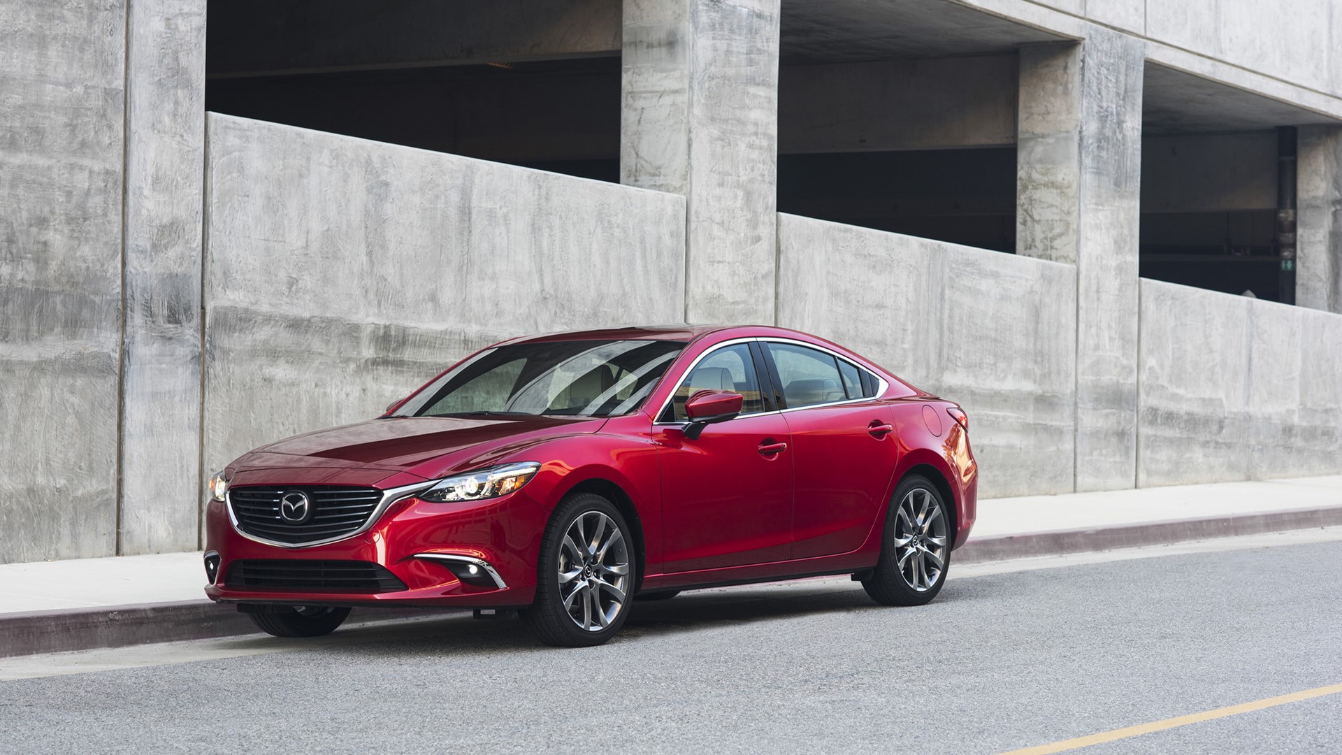 Starting at $24,195, the Mazda6 Touring comes complete with more technology like Smart City Brake Support, rain-sensing wipers, dual-zone automatic climate control, and automatic headlights, plus leatherette seats. Mazda added the new Touring Premium Package for 2017.5 Touring, a $1,425 add-on for the BOSE/Moonroof/Satellite Package (which does exactly what it sounds like). The premium package adds an advanced exterior lighting system, auto-dimming mirrors, Homelink Garage Door Opener, and leather-upholstered seats.