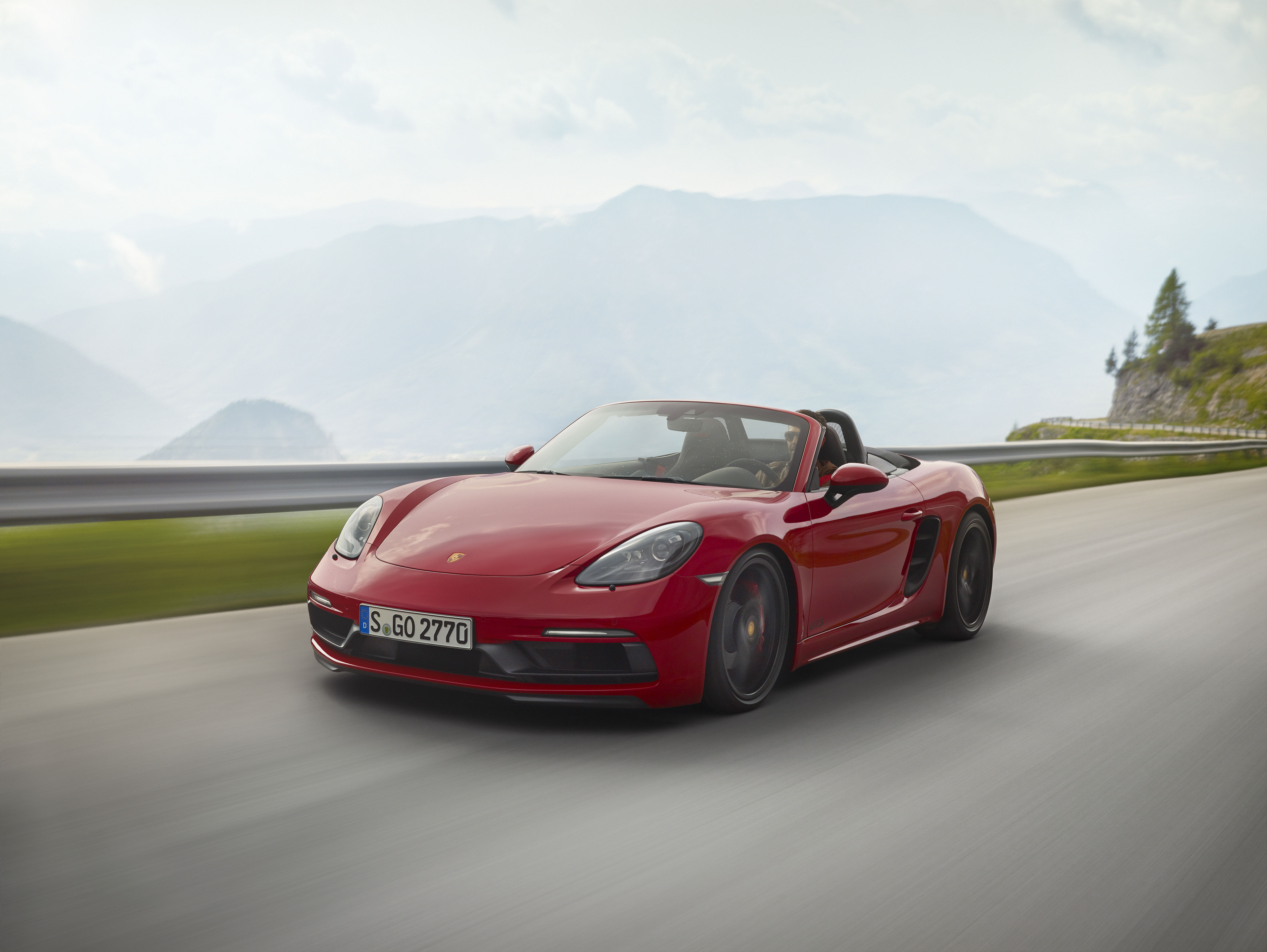 Porsche revealed on Tuesday that it will be introducing the sport-themed GTS trim to its 718 Boxster and Cayman sportscars. Providing an up-to-snuff power increase to 365 HP and 317 lb. ft. of torque, the GTS treatment also adorns the 718 twins with splashes of black through the front fascia, headlights, and interior.