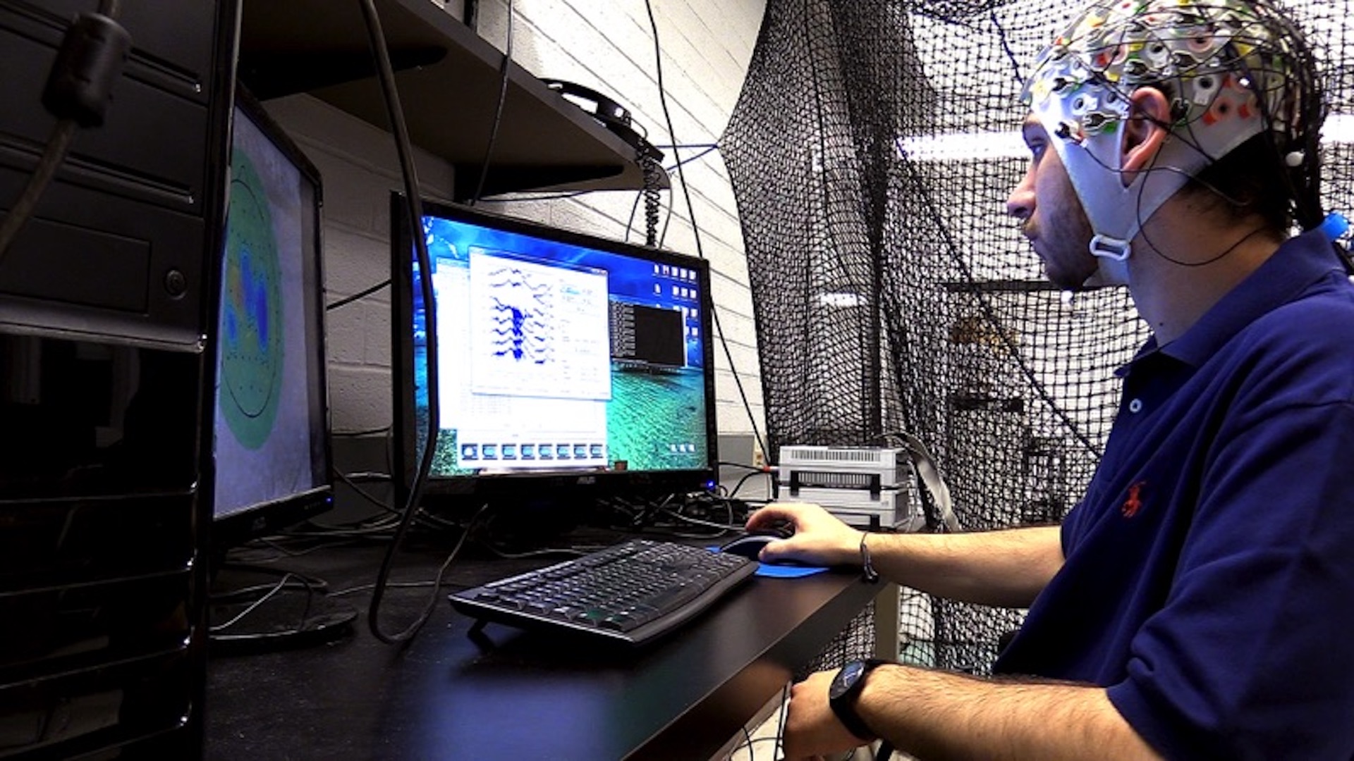 “We first train the human subjects to be able to imagine those behaviors,” Artemiadis says, referring to commands or movements. “Then we train an algorithm to relate those behaviors to activations from different parts of the brain,” Artemiadis explains. Commands are sent to the drone through an electroencephalogram, which is that cyberpunkish swimming cap you see up top.