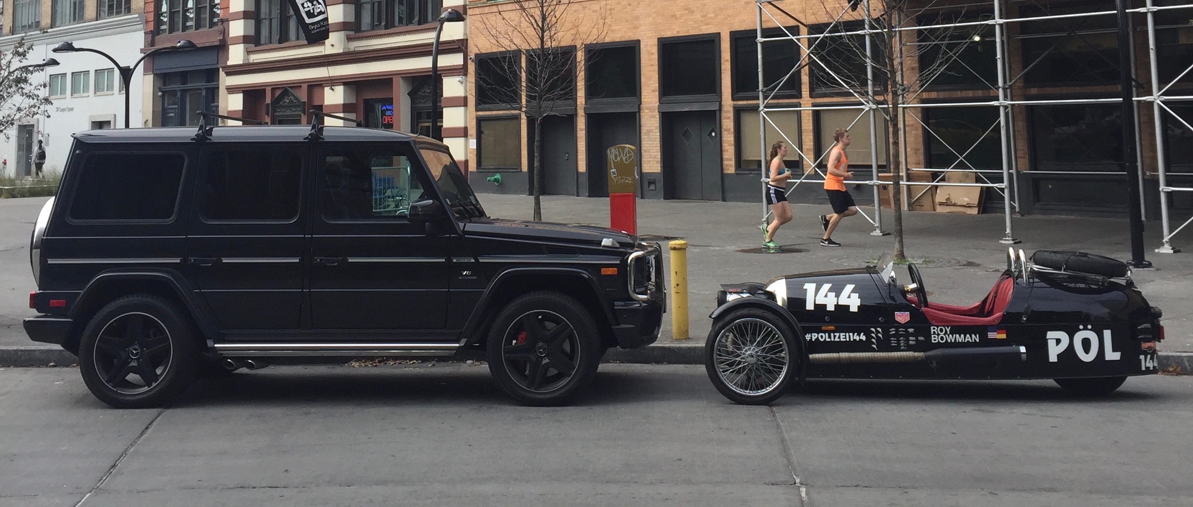 The list of cars “defeated” by my Cannonball record-setting Morgan 3-Wheeler is getting longer by the week: the Porsche 911, the Ford Mustang GT, the e-Moke, the Land Rover Series 1, and the Vanderhall Venice. But just when I thought the only thing that could defeat it was another Morgan 3-Wheeler, Germany came back for a rematch. This past weekend, I was handed the keys to a giant, overly-powerful Mercedes-AMG G63—which, in my opinion, is basically the Harvey Weinstein of SUVs—and a true battle was on.