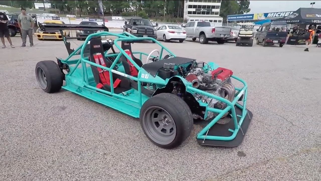 In the pursuit of being lightweight, however, this X-Tegra loses two key elements important in a modern race car or track toy: Aerodynamic downforce, and structural rigidity. According to a comment on the driving experience left by Matt on Reddit, the front end started to get light at around 70 miles per hour, presumably due to the air rushing through what used to be an enclosed engine compartment, and into the firewall, where it has nowhere to go but down. Having a splitter up front to add frontal downforce isn’t of much use when there is something that counteracts it immediately to its rear.