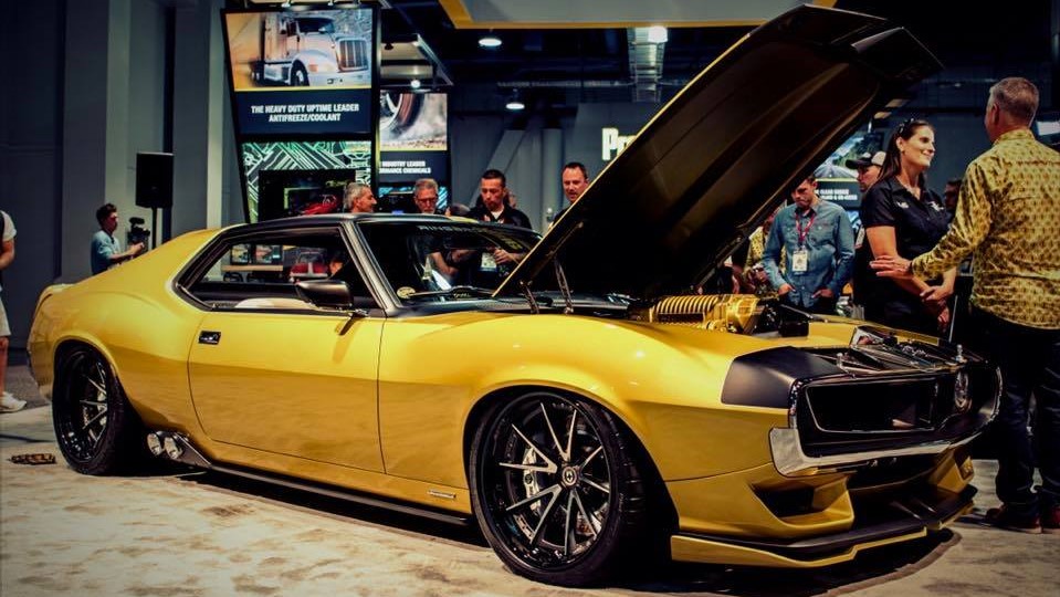 Unveiled on Tuesday at SEMA in Las Vegas, this restomod has a stunning gold and black paint job that nicely combines the blend of retro and modern style that this Javelin is all about. It doesn’t have much of its original sheet metal with much of its body being sculpted from carbon fiber, making the car lighter.