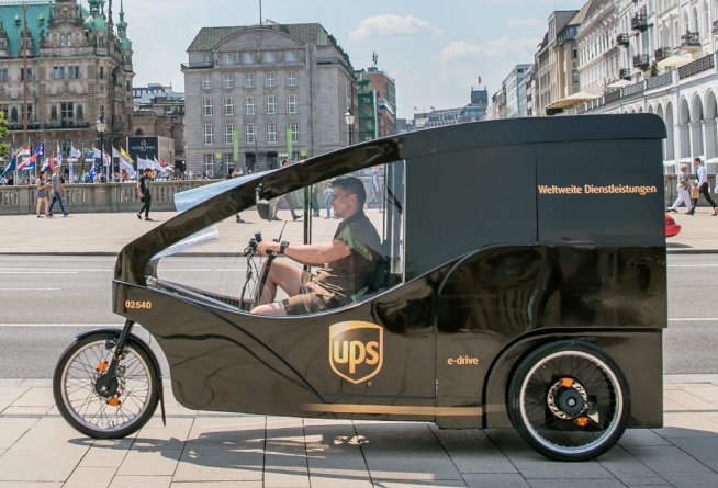 In Hamburg, where the central part of the city is lined with narrow streets and parking can be non-existent, meaning commercial vehicles make roads impassable. The answer, for UPS, was to replace its large delivery trucks with a smaller, city-friendly fleet. Now, UPS drivers pick up deliveries from micro depots and then use alternative methods, including walkers, regular tricycles or electrically assisted versions to make deliveries in pedestrian-only zones.