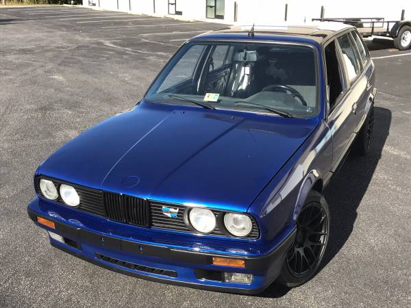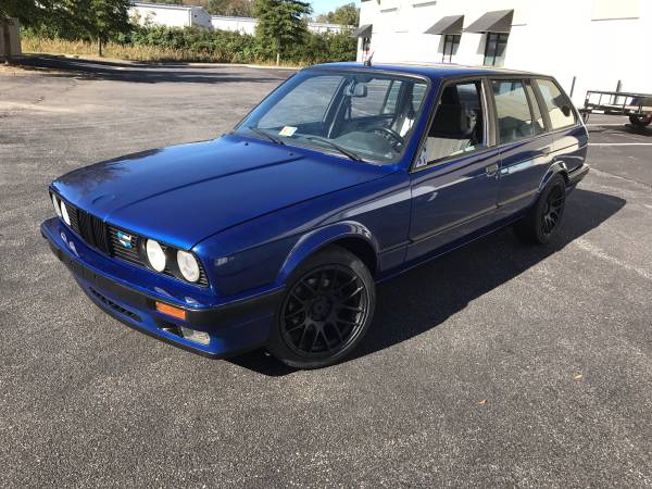The manual 325i wagon was originally painted white but the owner has repainted it Lemans Blue with black exterior accents. Apparently, the car was imported straight from Germany, which may add to the high price.