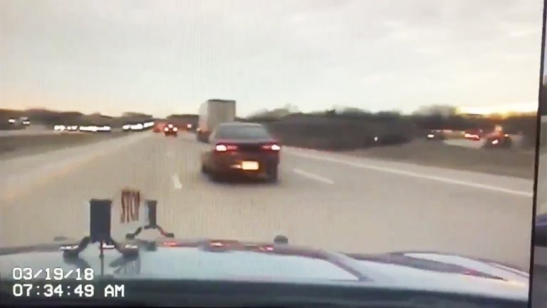 The newspaper cited Michigan State Police in reporting the 2007 Chevy Impala hit an exit sign after losing control, then a guardrail before coming to a stop.