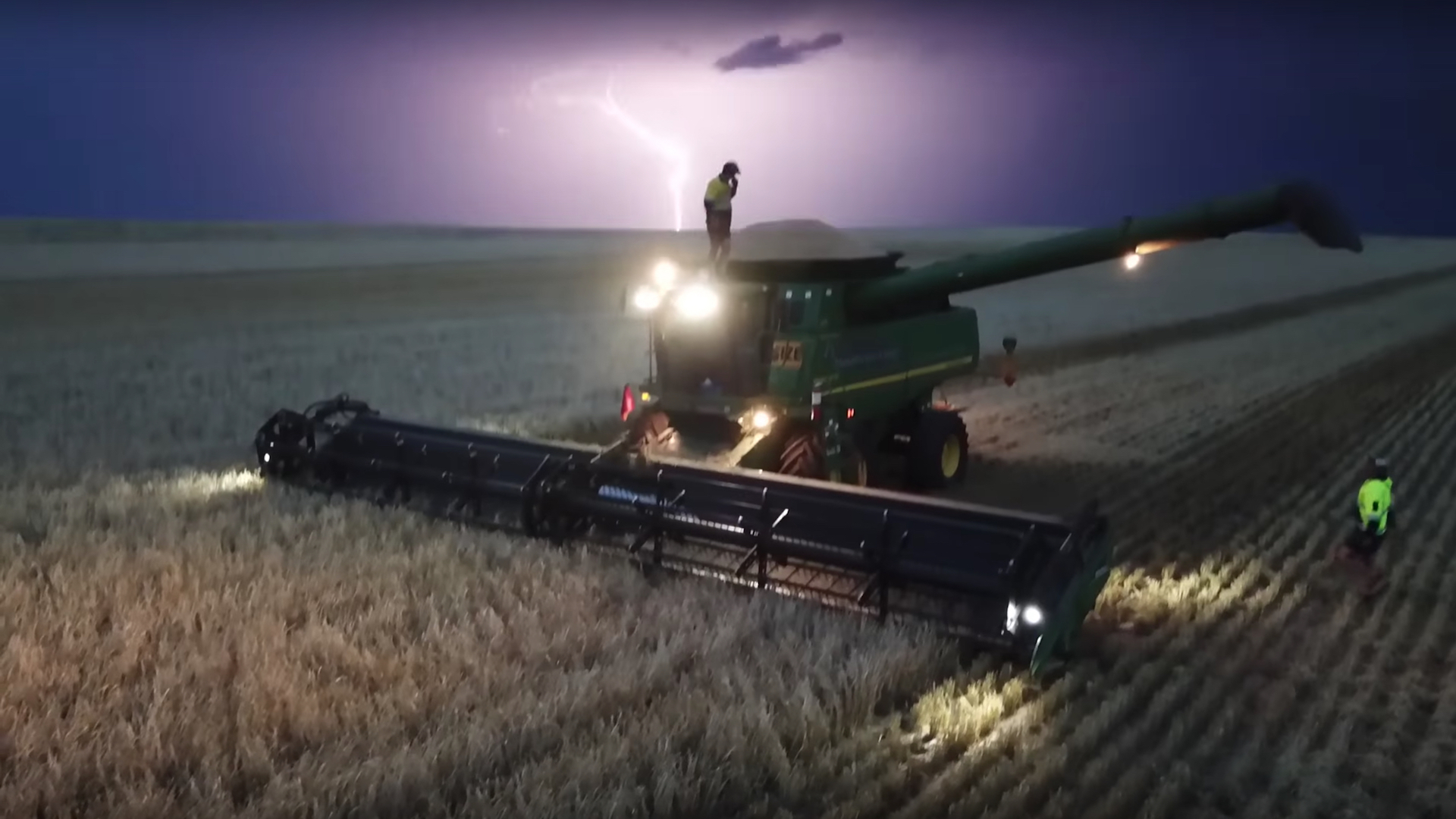 According to The Chronicle, Dougal Stallman graduated from Toowoomba Grammar School in 2016 and currently works for Bingham Agriculture in South Australia. As you can tell from the company’s Facebook page, the team seems to enjoy shooting footage via drone quite a bit. Sam Sedgwick’s most recent video, however, has garnered more traction than others and features Bingham Agriculture’s own Dougal Stallman taking to the top of a wheat harvester during a lightning storm—and dancing.