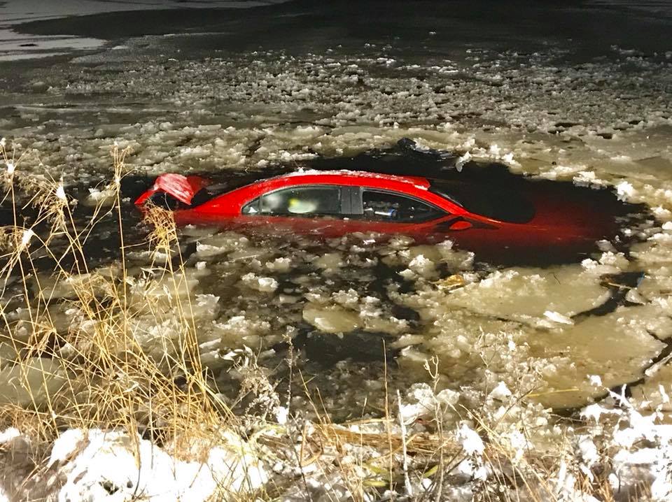 Unfortunately, the car began to sink at a rapid rate into what was believed to be icy water up to about ten feet deep.