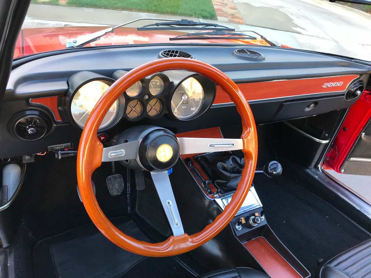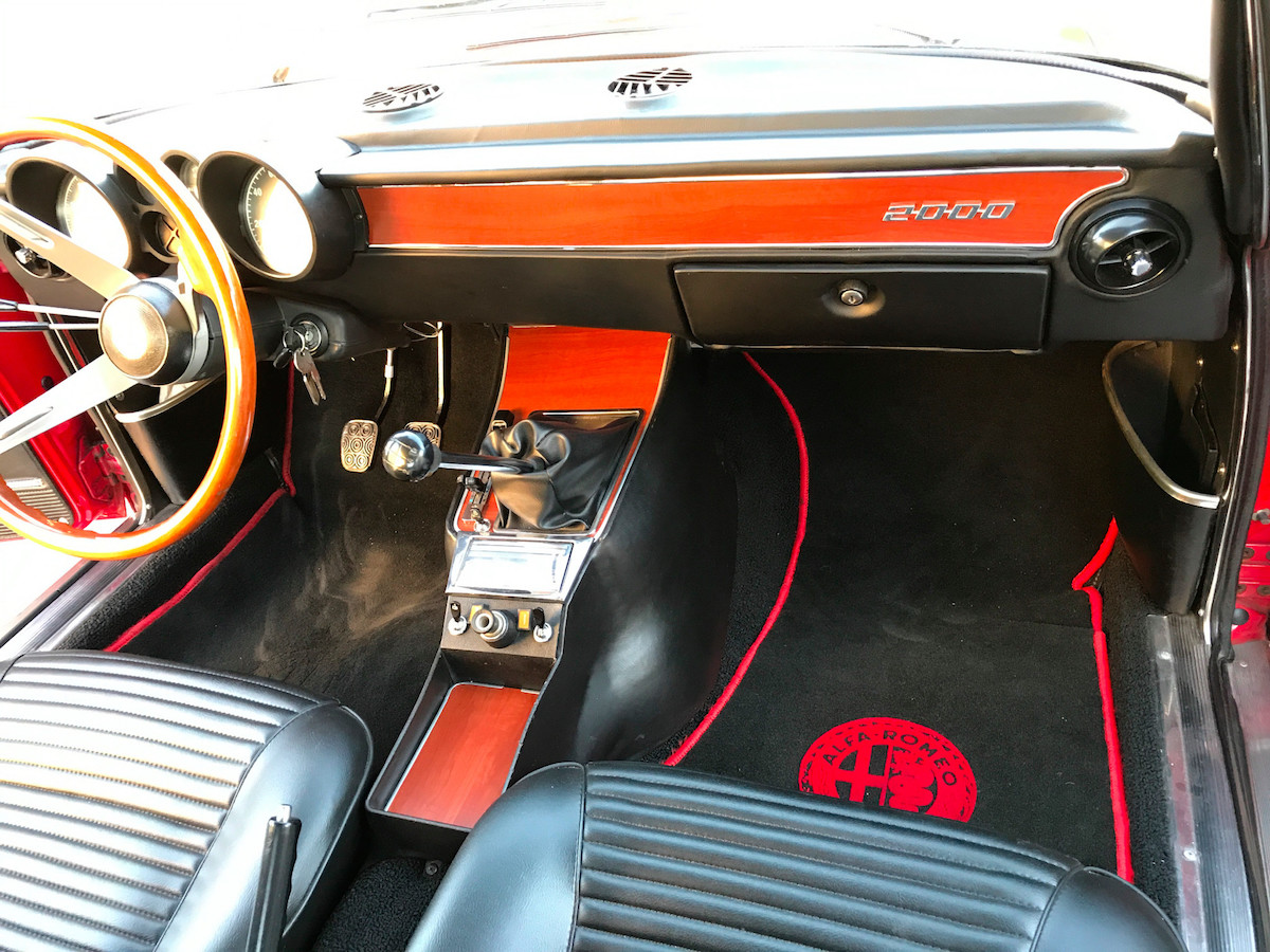 The few aftermarket modifications are well-executed, including Koni suspension upgrades and an Ansa exhaust system. While the car comes with the original fuel-injection pump, the engine now features Weber carburetors and a European-style intake/air box to conform with Euro-spec GTVs of the period. Alfaholics‘ 15-inch GTA-style wheels have also been added, an Alfista-approved modification considering Alfaholics is basically Singer for Alfa Romeos instead of Porsches.