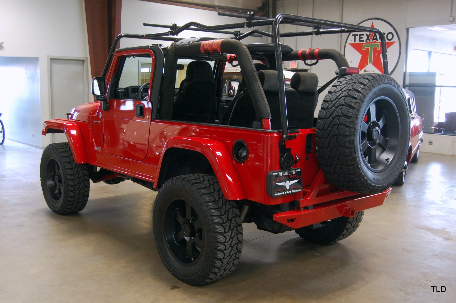 The back gets some nice touches as well, such as the round LED tail lights and a Congo roof cage that rotates out of the way to put the soft top up and down. With a Superlift long arm suspension, matching Warn bumpers, and rock sliders, this Jeep looks ready to tackle the trails.