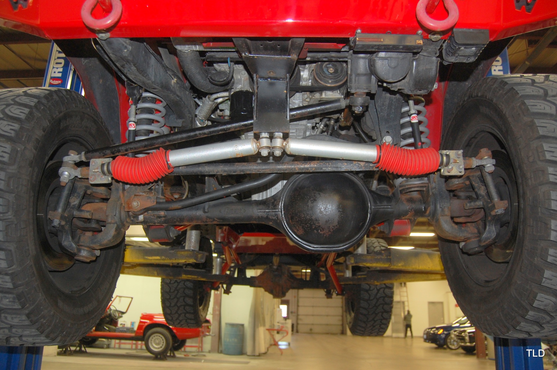 The engine sends its power to all four wheels through a beefed-up 48RE automatic transmission and custom built RockTrac transfer case. Custom driveshafts with Tom Woods U-joints hook up to custom Currie axles, a Dana 60 rear and a modified Ford 9-inch in front with F-450 outers, both with 35-spline shafts. As with the rest of the build, it looks like it could have come out of the factory this way, despite the addition of some Blue Oval products in the front end.