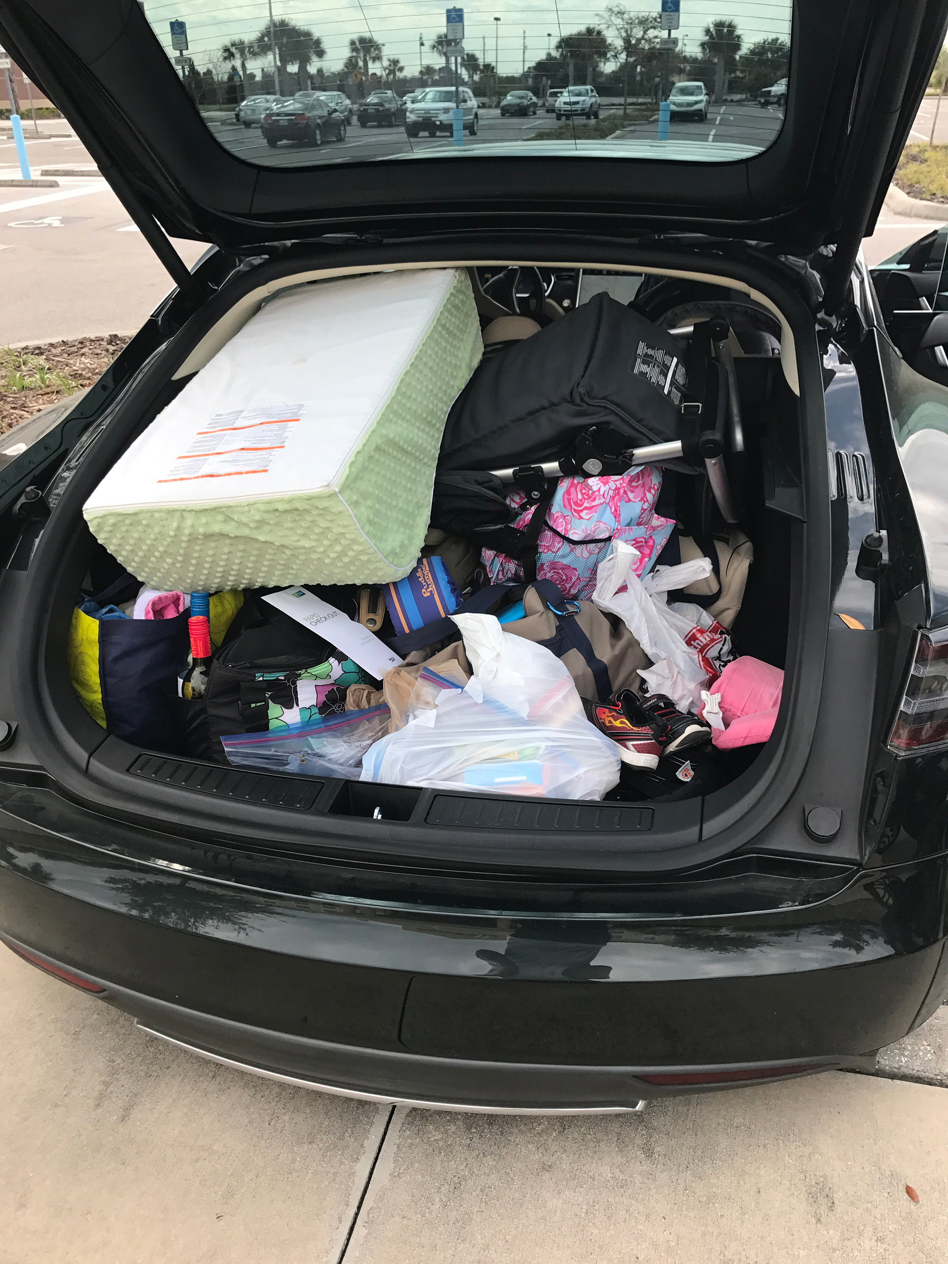 Although the Model 3’s 15.3 cubic feet of cargo capacity is more than the roughly 13 cubic feet in a BMW 3 Series or an Audi A4, it’s less than half the cargo capacity of a Model S. Which presents a big problem for me—because, as you can see below, I need every bit of cargo space the larger Tesla sedan has to offer.