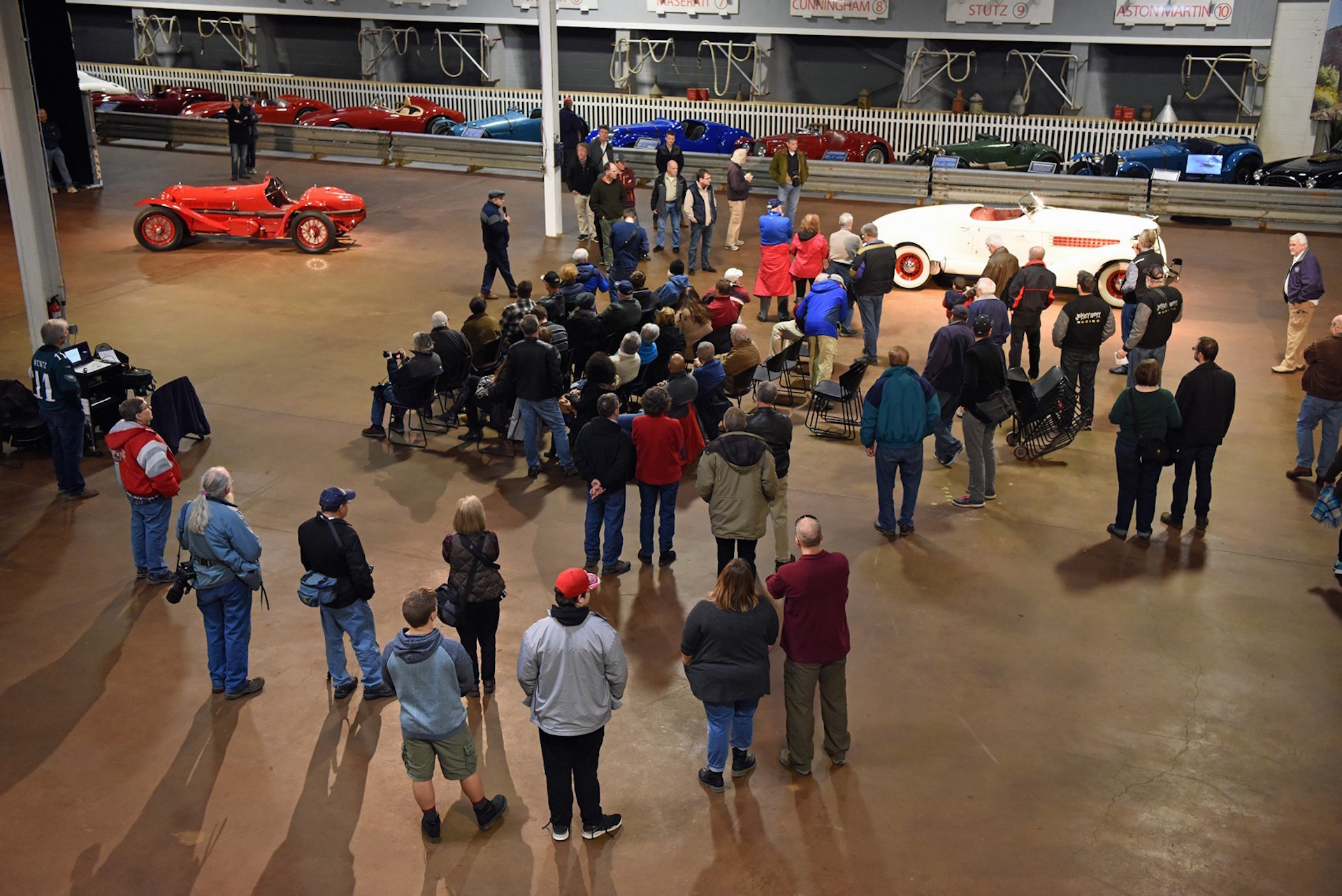 A baby blue 1933 Squire roadster, a white 1935 Auburn 851 speedster with red spokes, and a red 1937 Alfa Romeo 8C 2.9A with a matching leather interior were on display. Museum-goers watched as Simeone and his curator, Kevin Kelly drove the cars around the museums 3-acre outdoor racetrack.