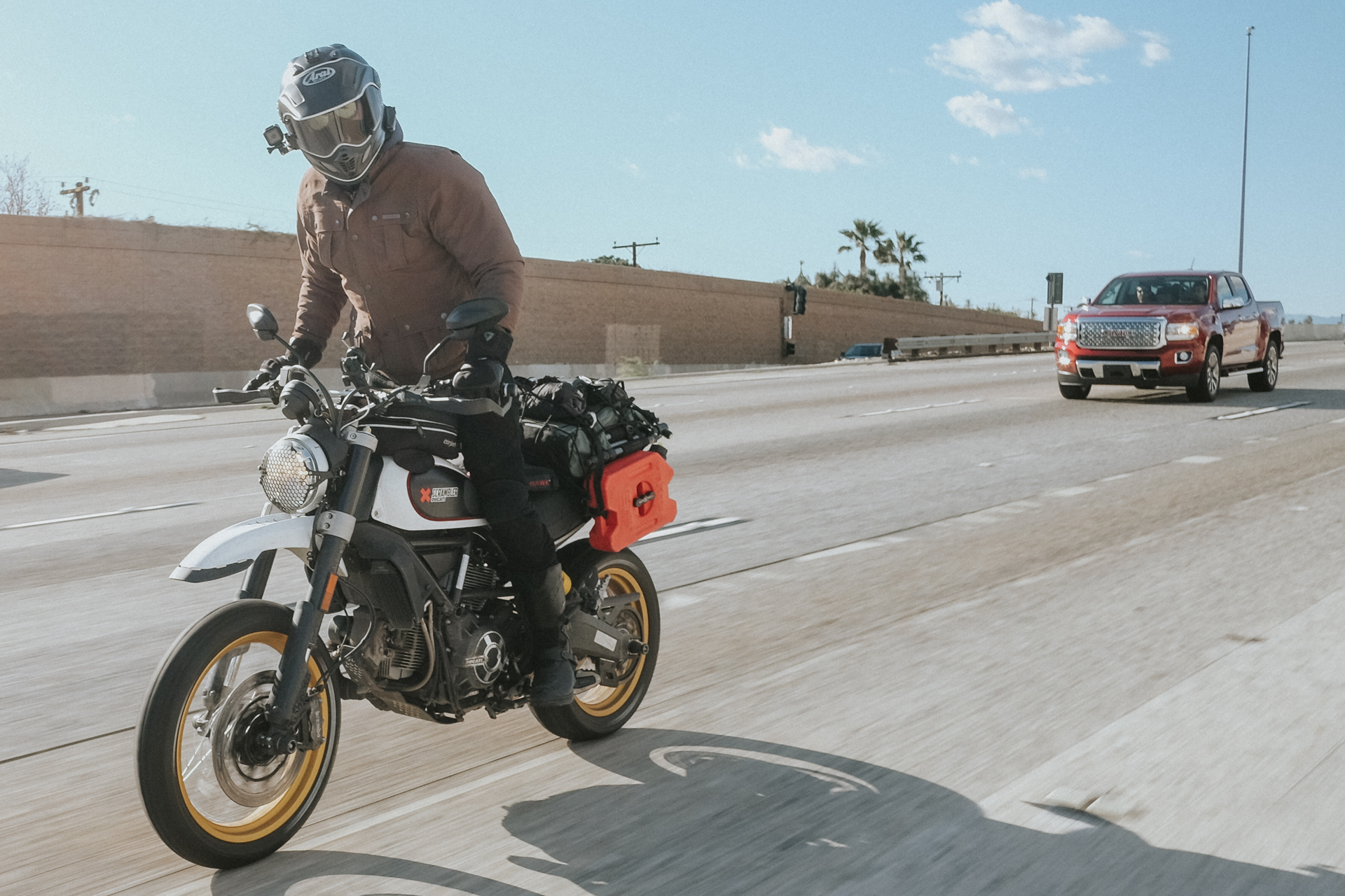 , There is nothing quite like going on a motorcycle journey and having a truck as a support vehicle. Purists will piss and moan but my buddies and I ride solo all year round so we have nothing to prove. This was a nice little luxury to have. , Sam BendallThe caravan consisted of three motorcycles and the GMC Canyon Denali. Since the Canyon Denali was delivered to my residence a couple days prior to the trip, I enjoyed running a couple of errands with the beast. Right from the get-go, I was impressed with the crew cab. Inside I completely forgot that I was sitting in a truck. All the conveniences I would expect in a luxury sedan were present: heated seats, fully loaded infotainment system, Bose audio, comfortable leather seats, and a responsive and powerful diesel engine.