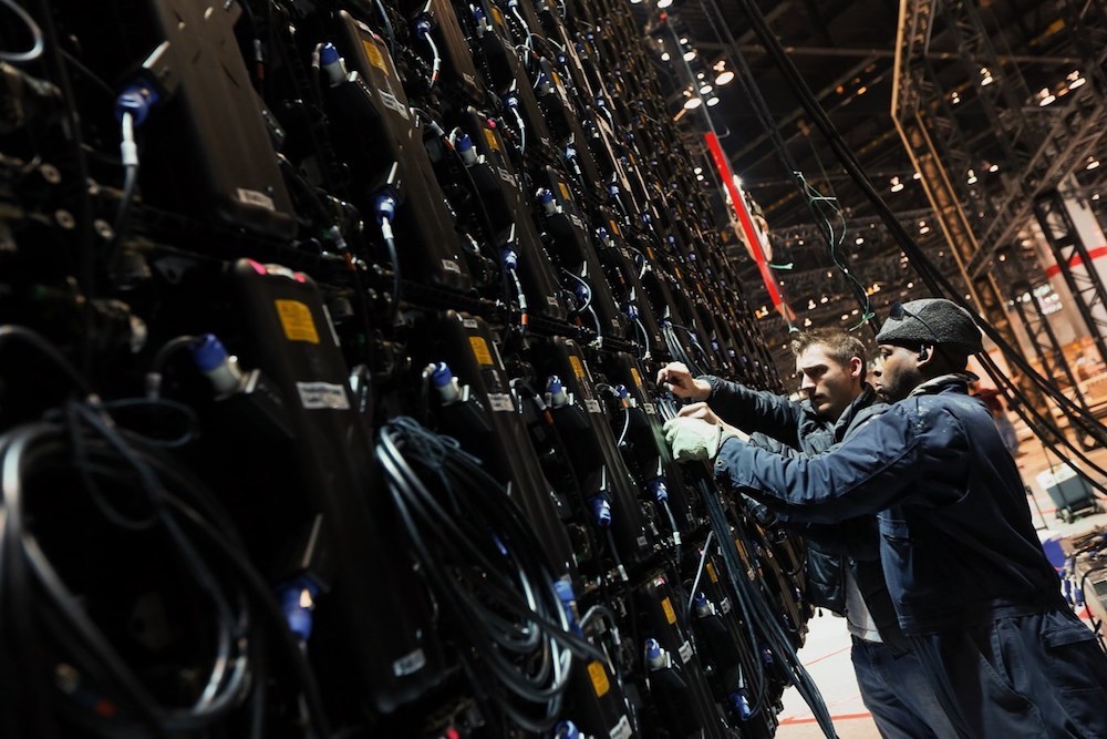 The first four of the 14 days allotted for the setup are spent installing lighting rigs only. “The cars are the stars of the show, and having the proper lighting to show them off is crucial,” said the 30-year auto show veteran. In fact, 6,000 lights are added to the McCormick Place’s stock lighting setup, but don’t think it’s as simple as adding a few more light bulbs. Entire motorized rigs must be installed in order to raise the purpose-built lamps to the predetermined height.